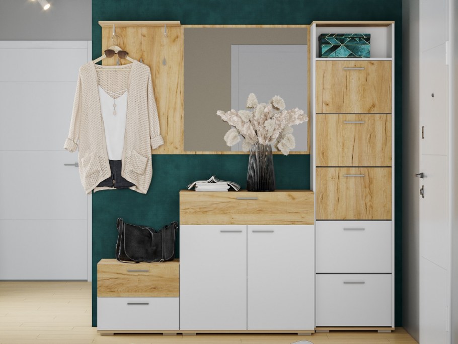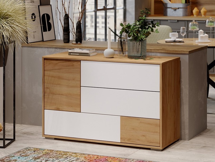 Комод "Берк-12" - дуб крафт белый/дуб крафт золотой