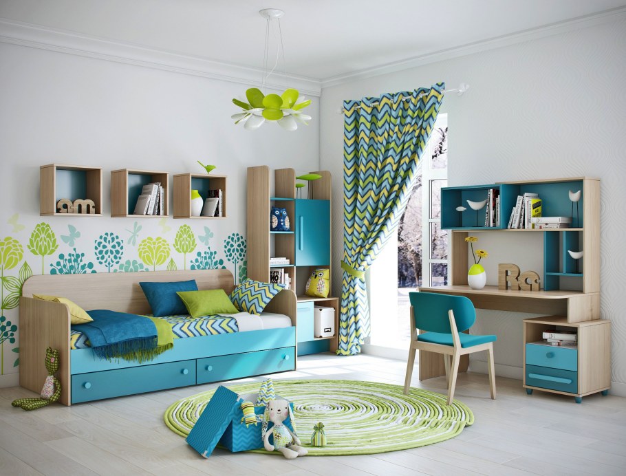 Дизайн интерьера комнаты подростка в бирюзовых тонах (77 фото)