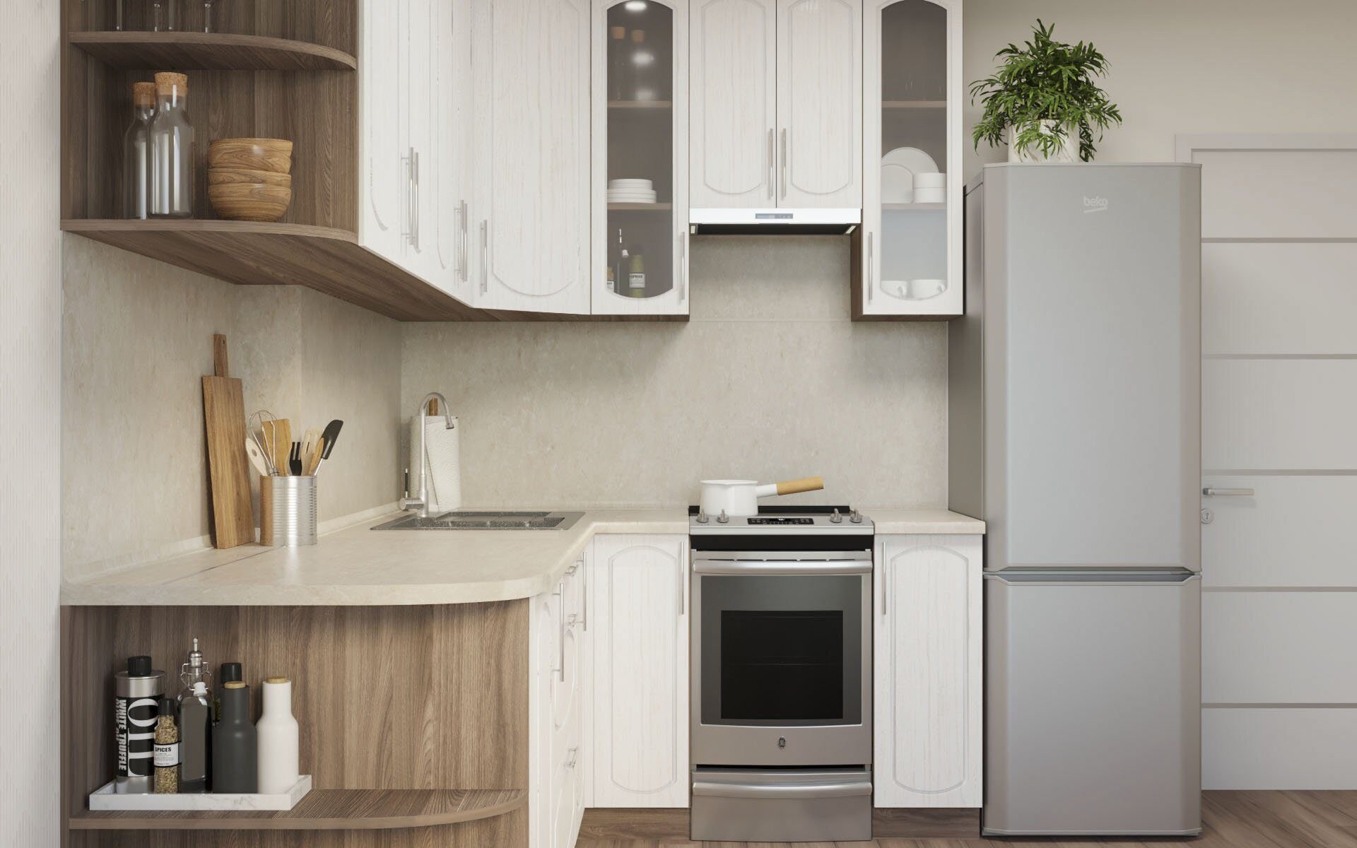 Кухня Виктория угловая белый Сандал