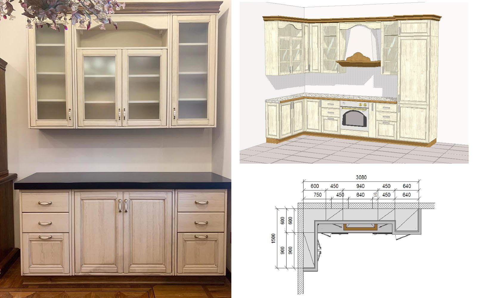 Кухня Венеция угловая с патиной
