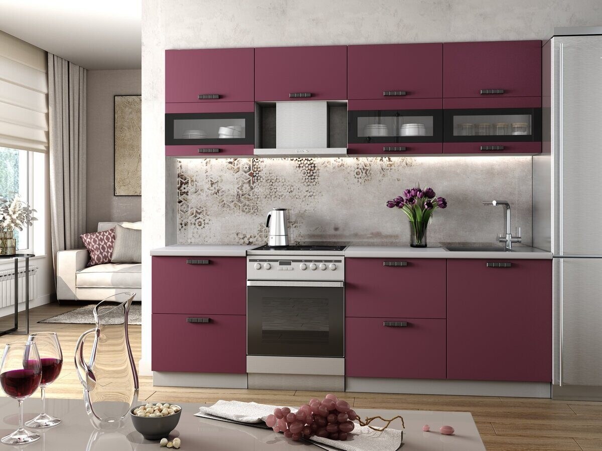 Кухня Валерия Сурская мебель модули бордовая