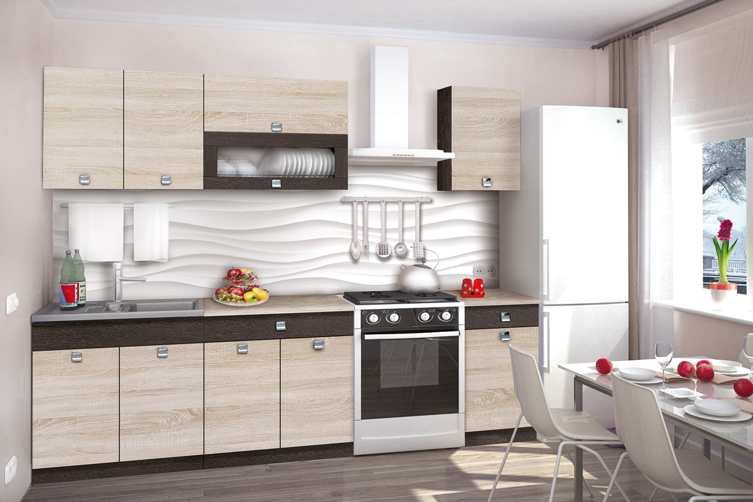 Кухонный гарнитур фэнтези белый универс, Лайнс 2,4м