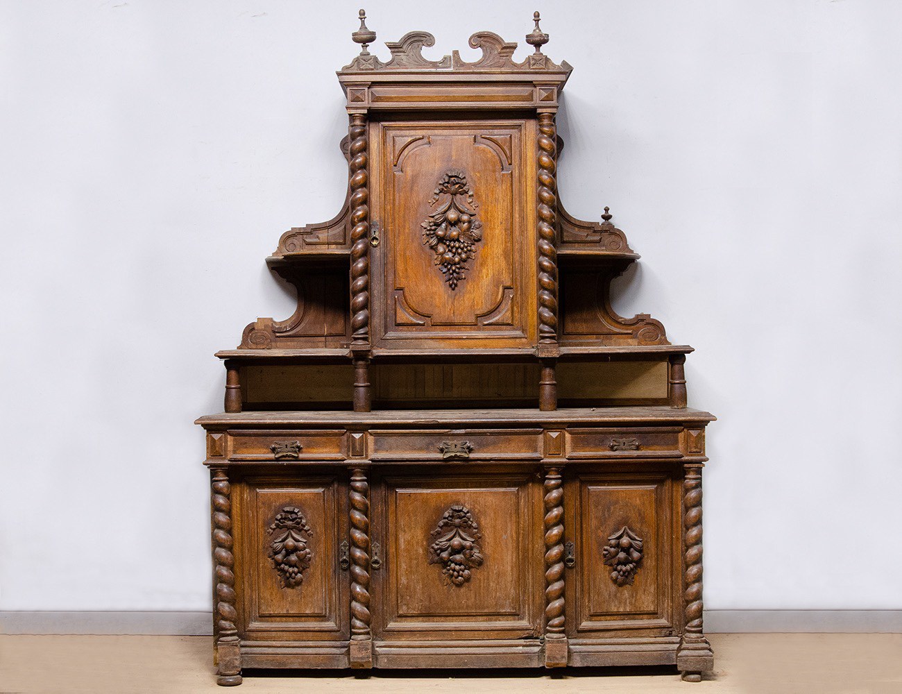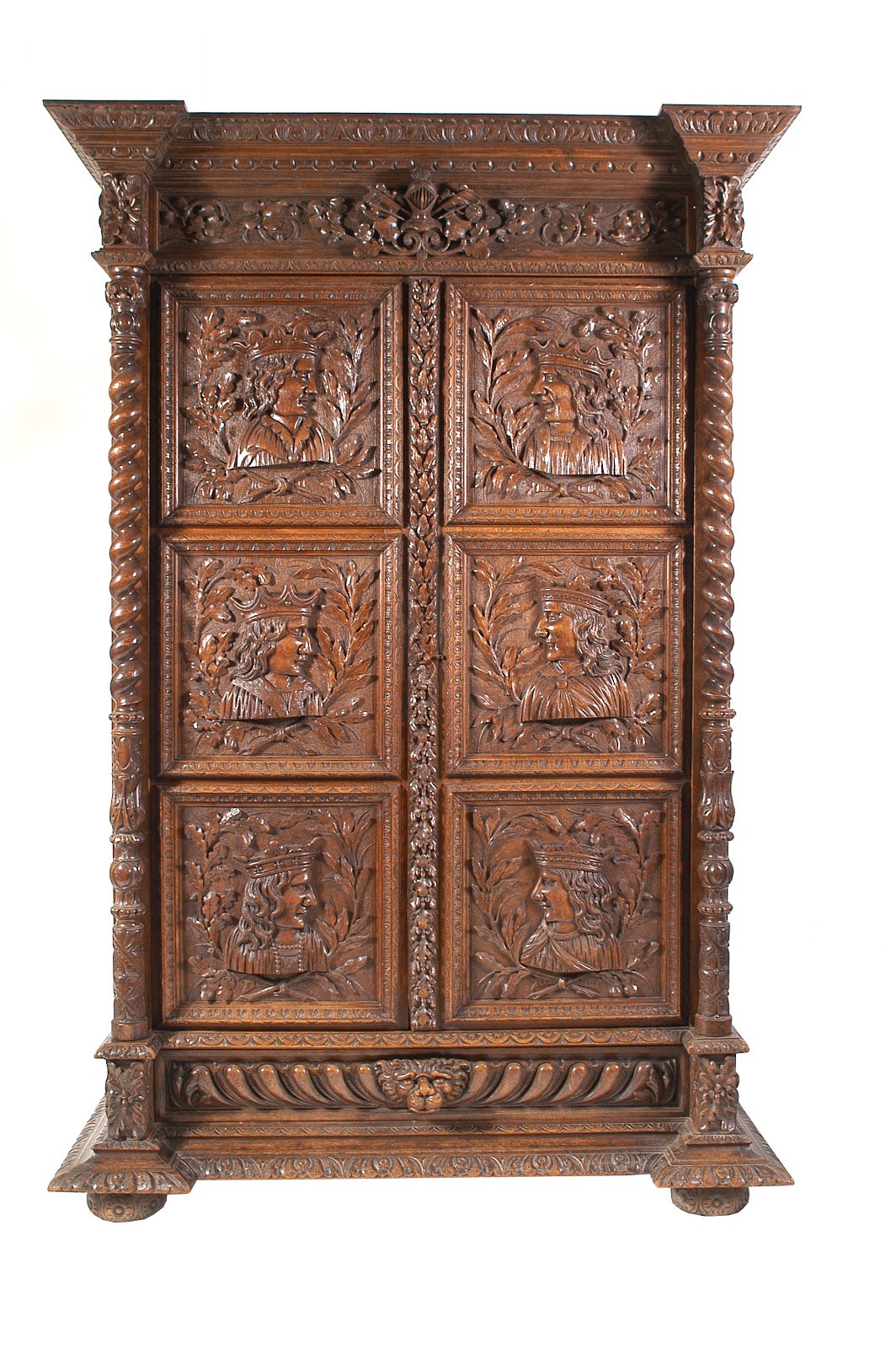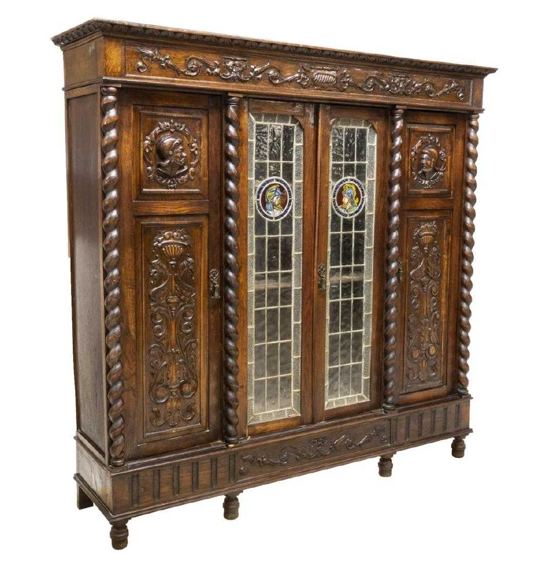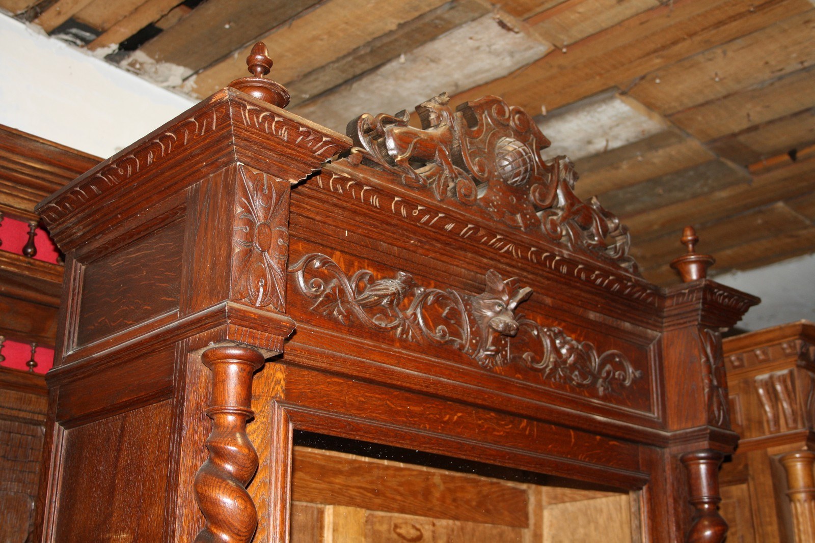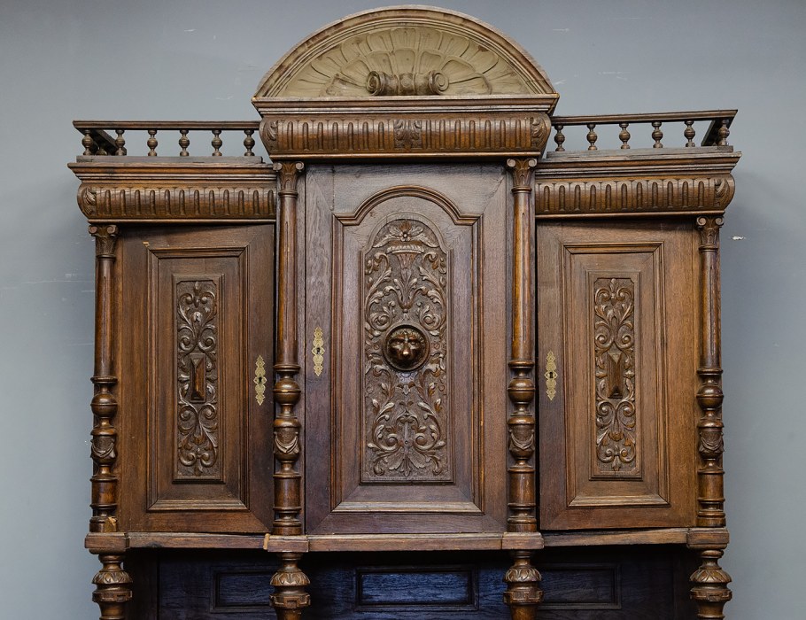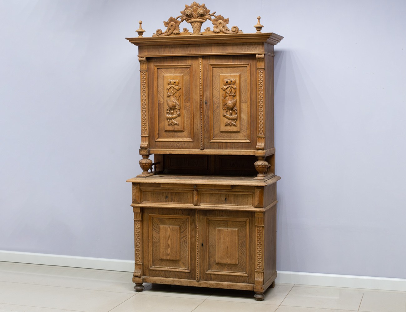 Антикварный дубовый шкаф с резным навершием (76 фото)