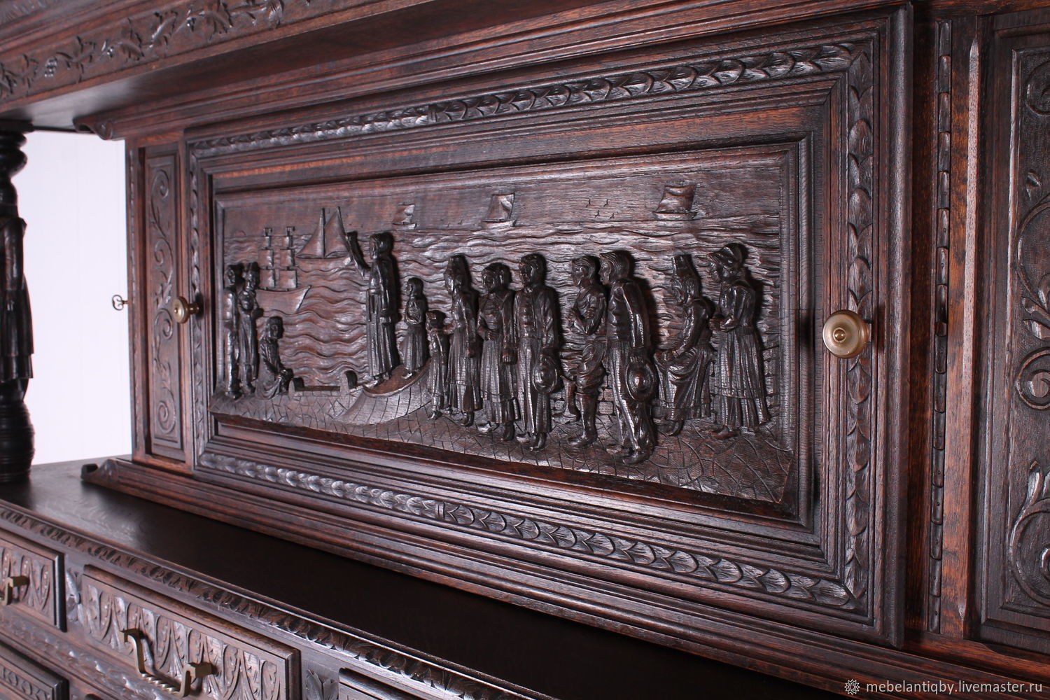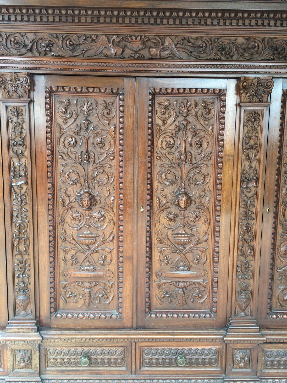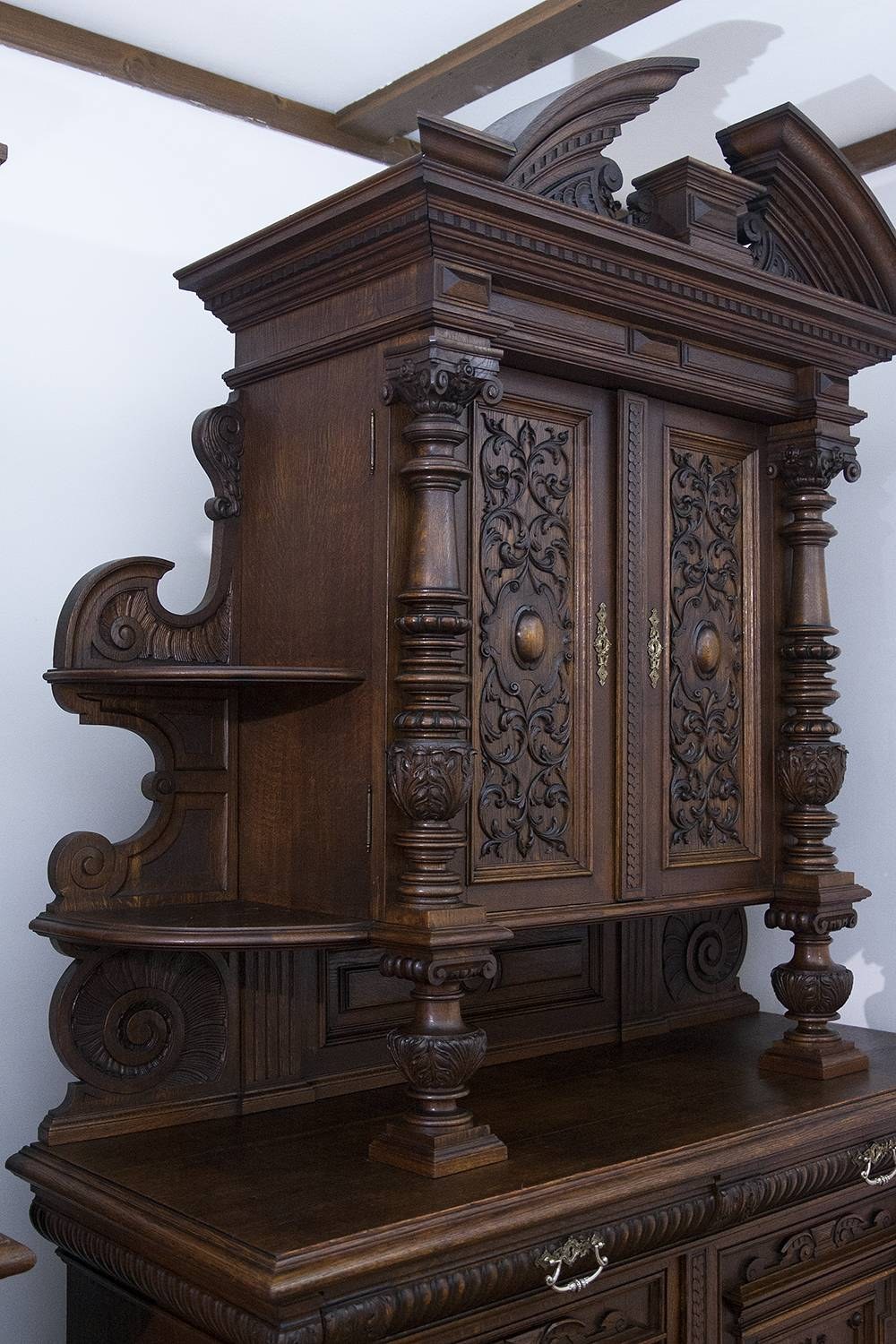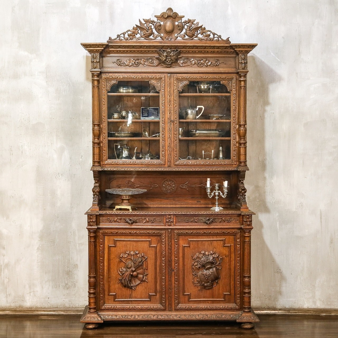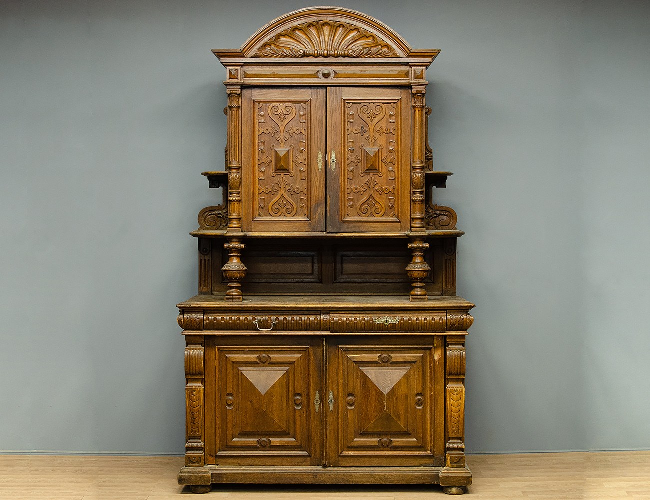 Антикварный дубовый шкаф с резным навершием (76 фото)
