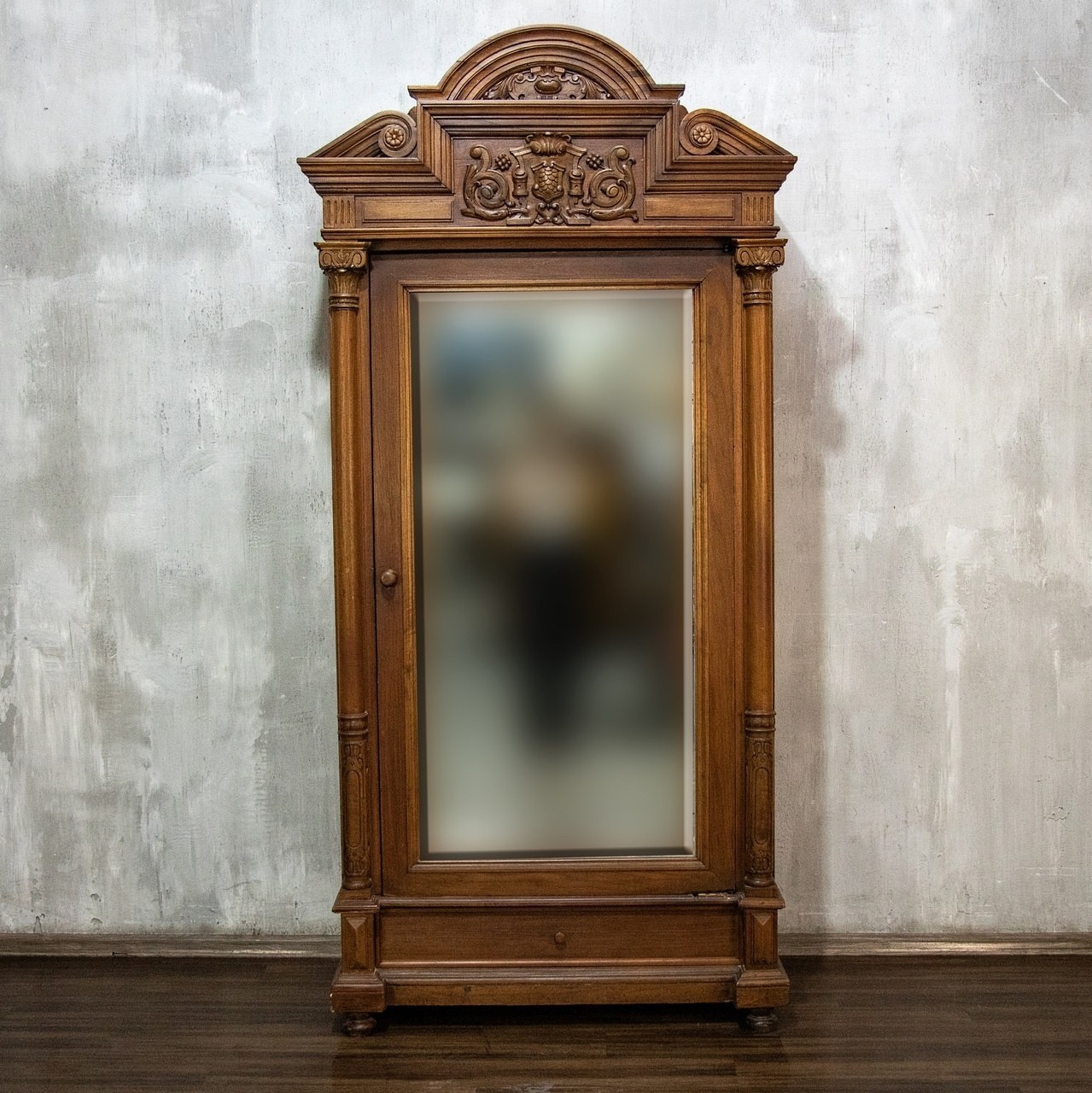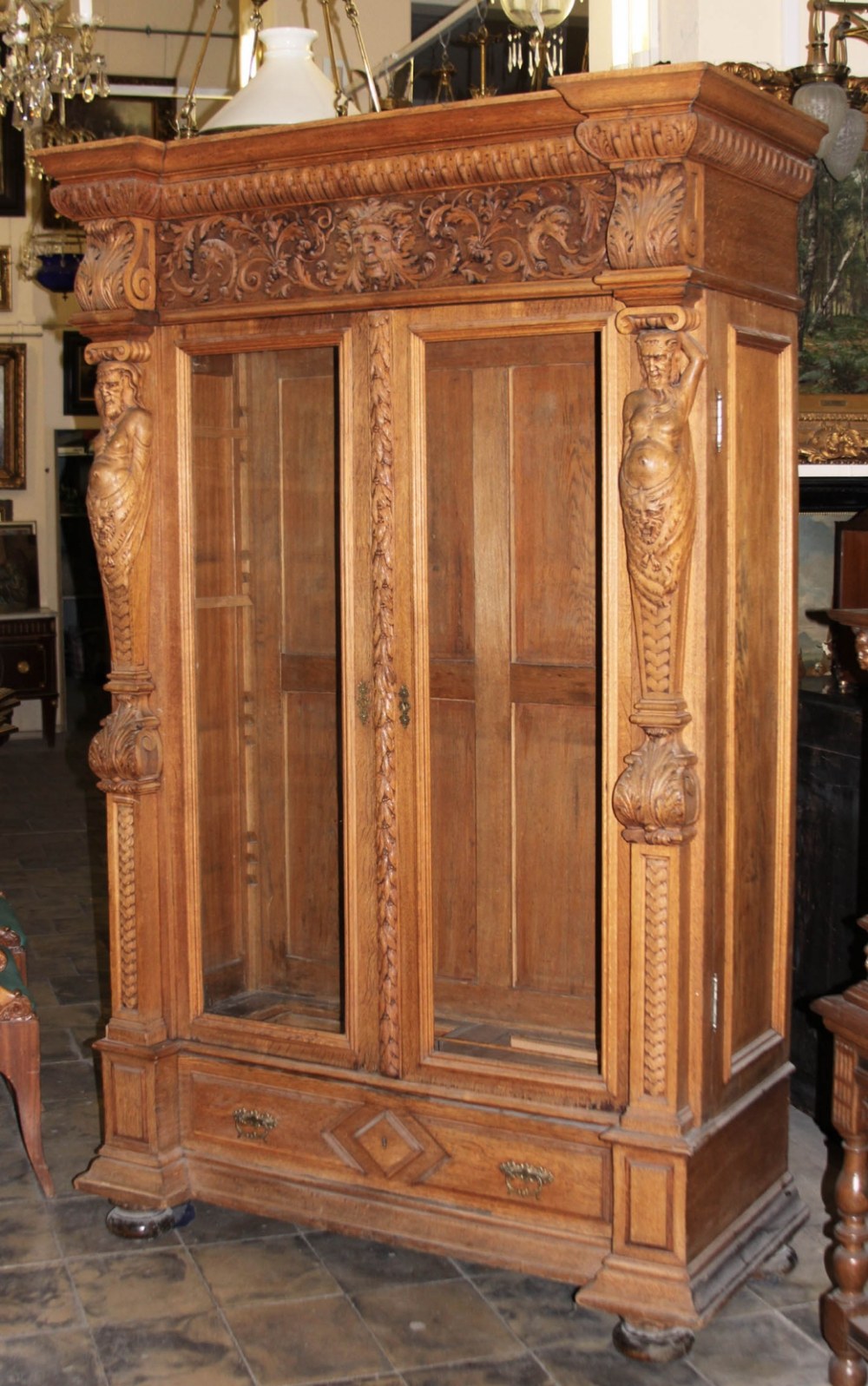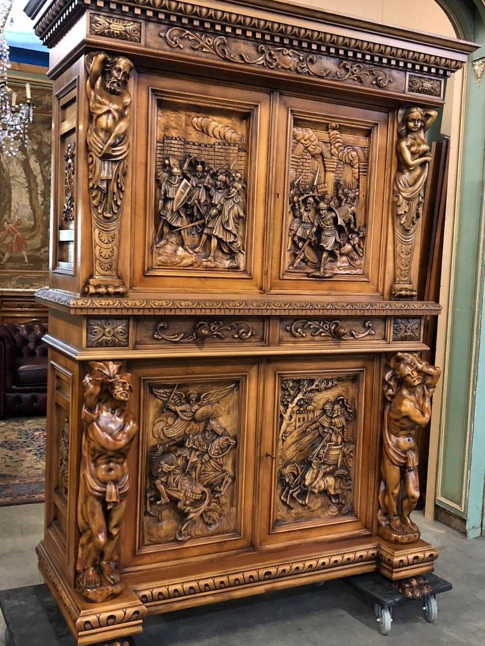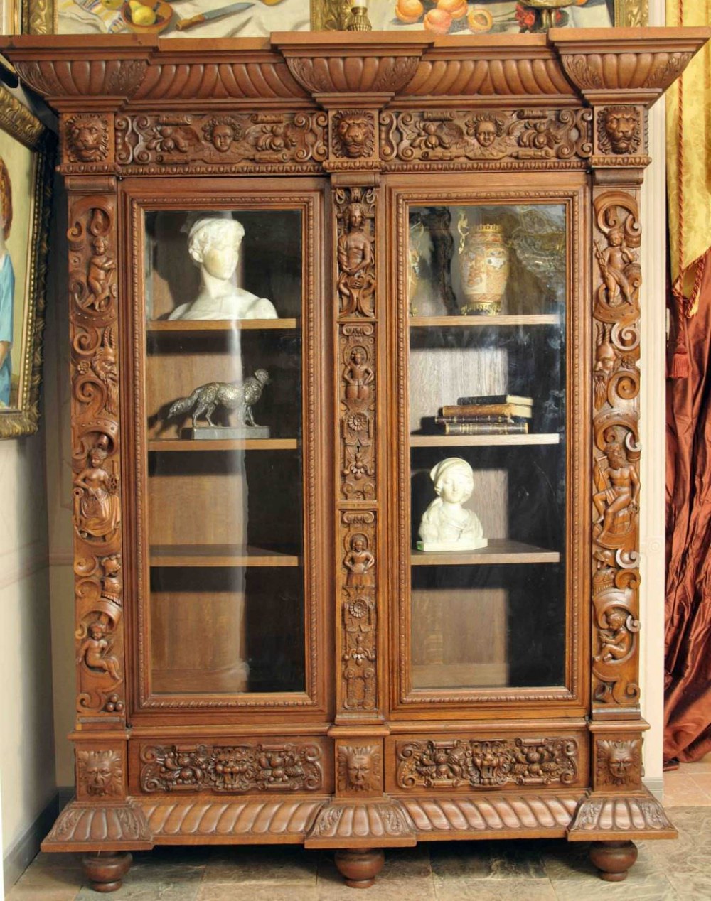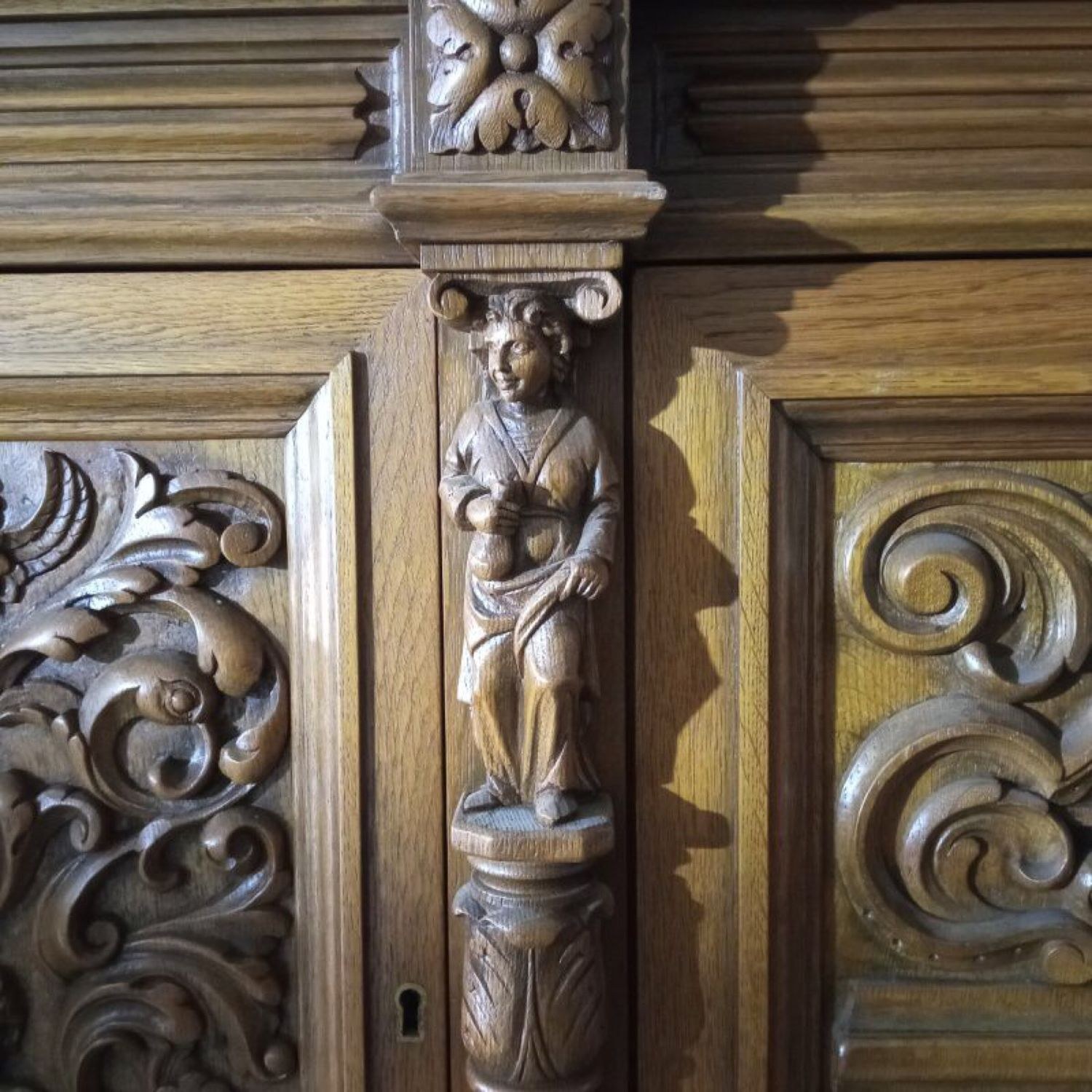 Антикварный дубовый шкаф с резным навершием (76 фото)