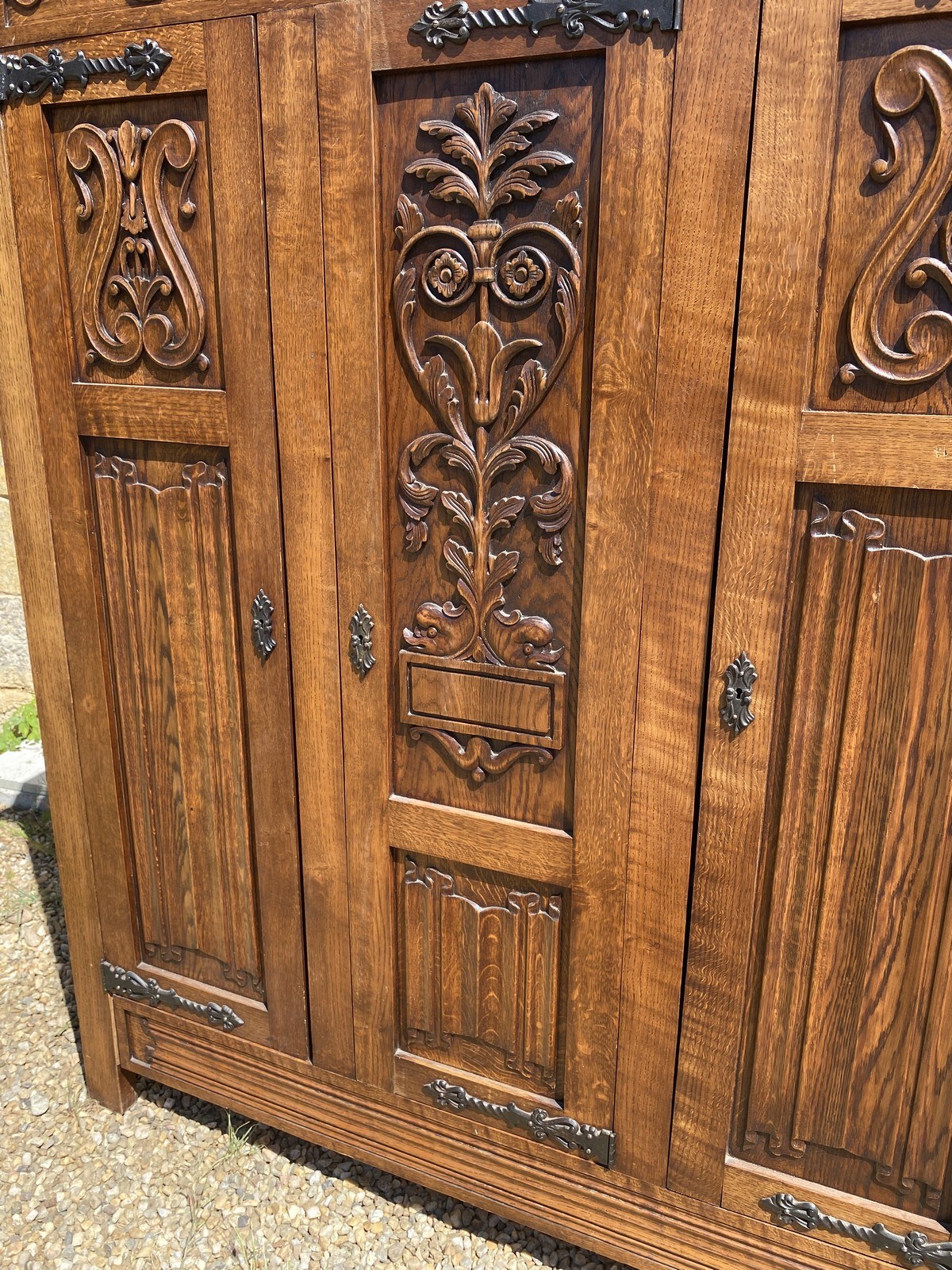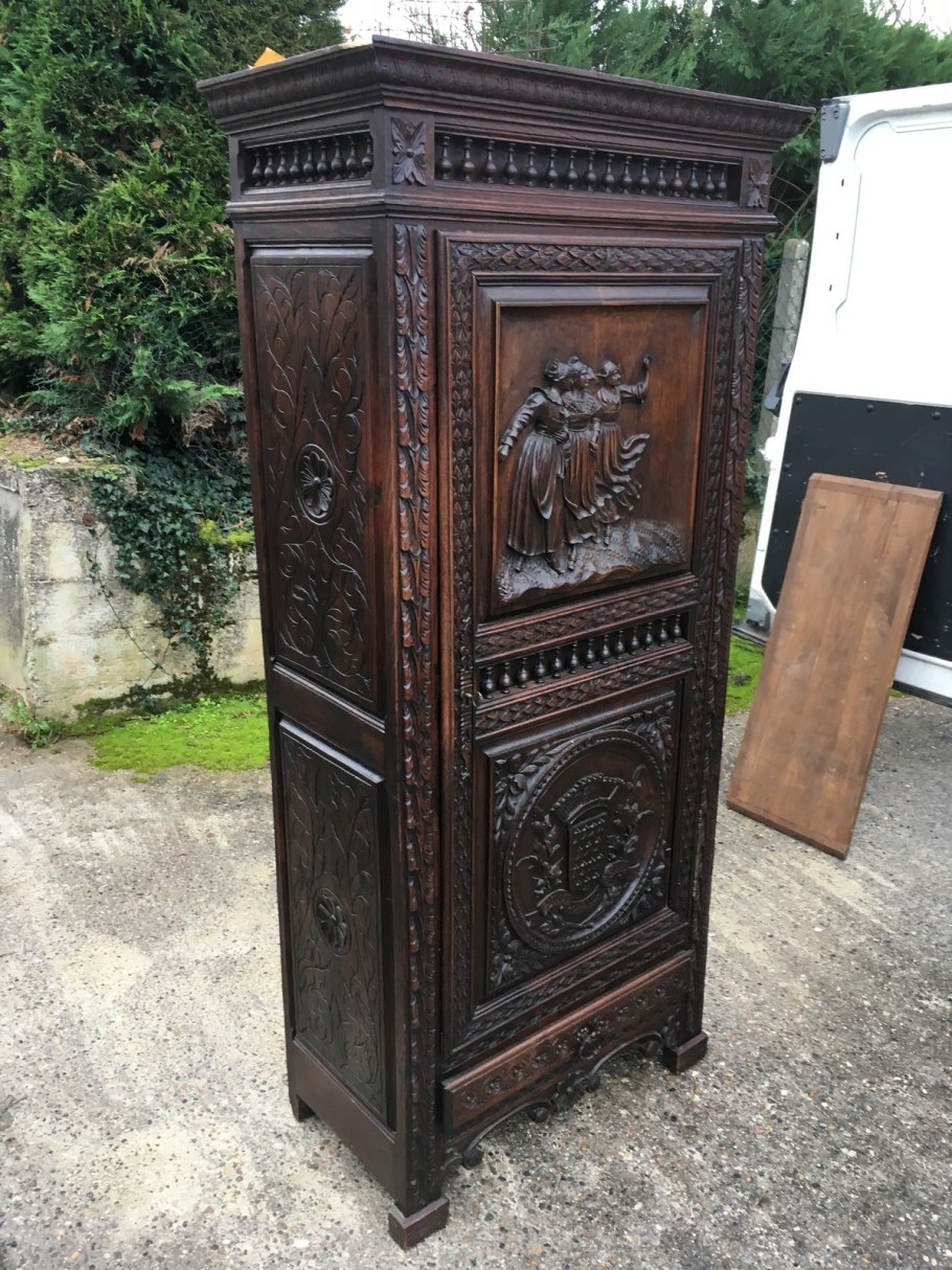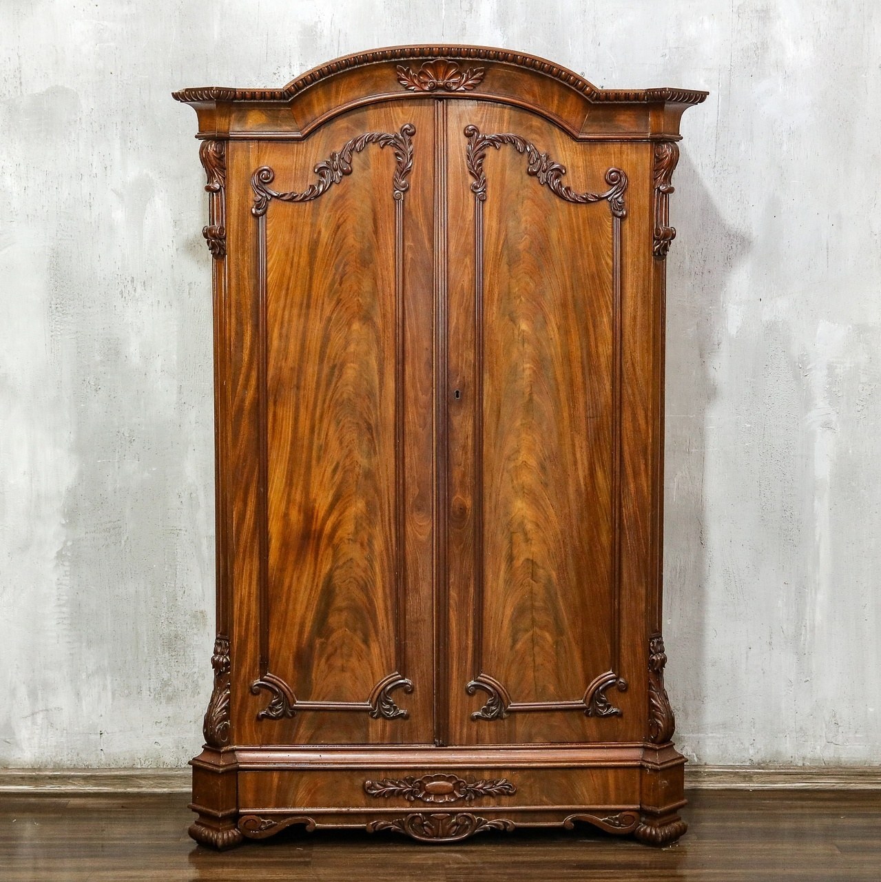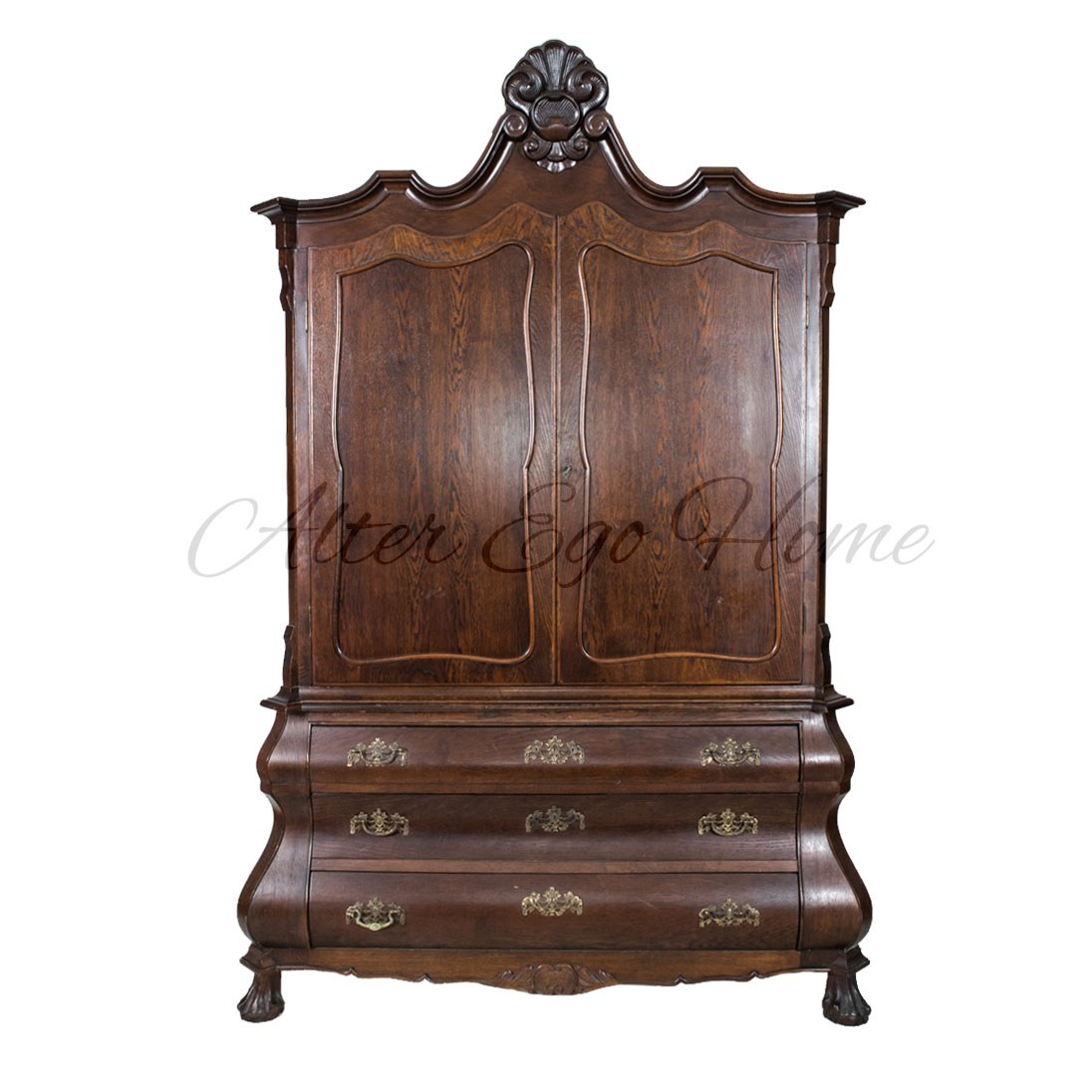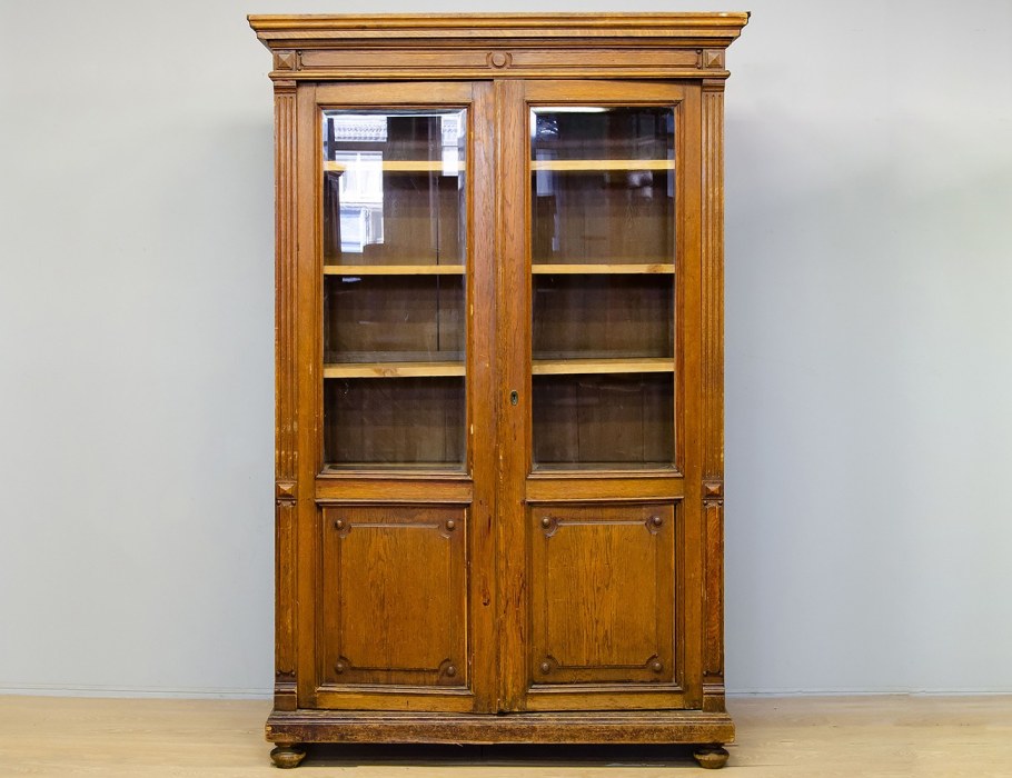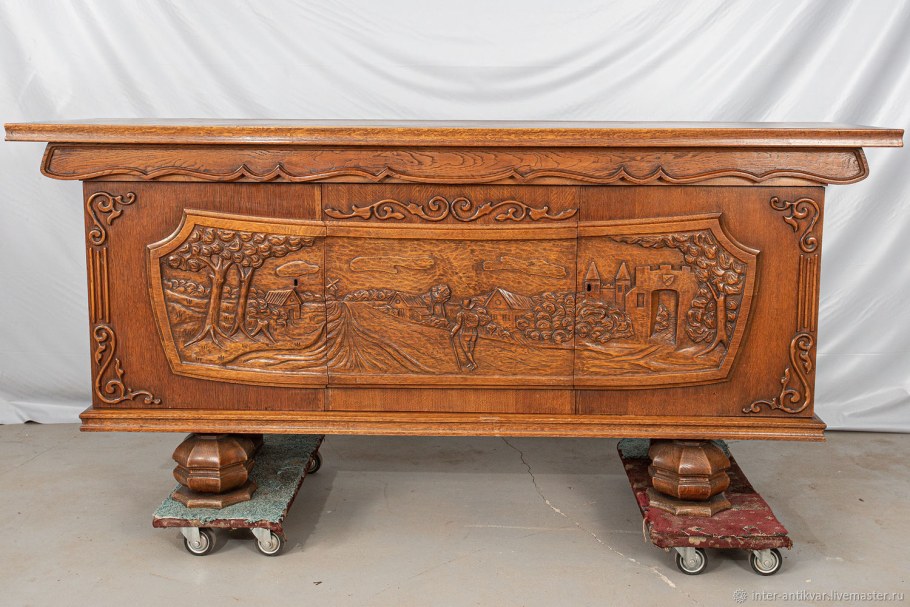 Антикварный дубовый шкаф с резным навершием (76 фото)