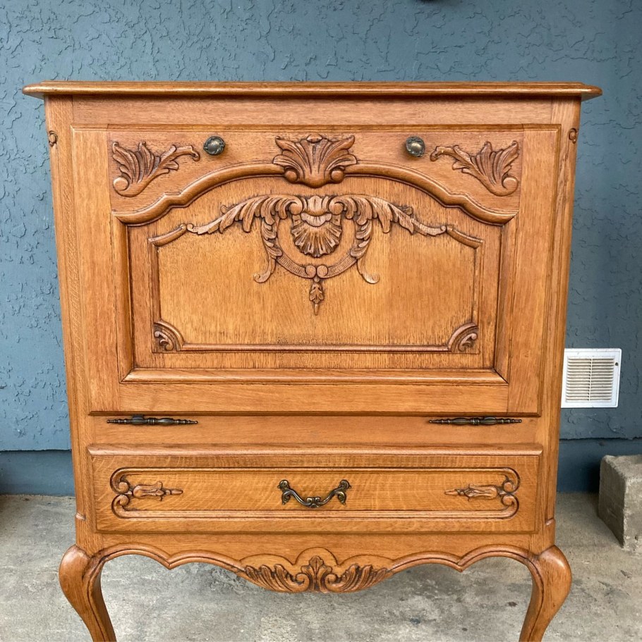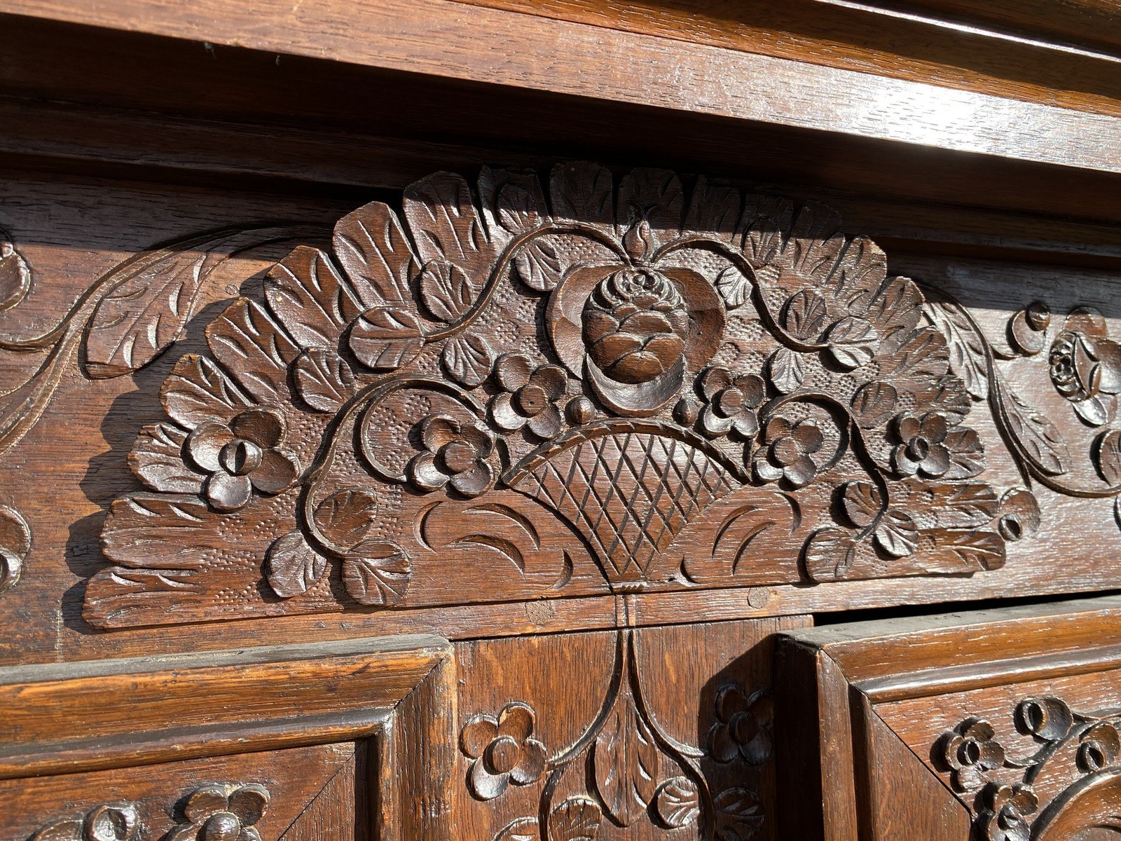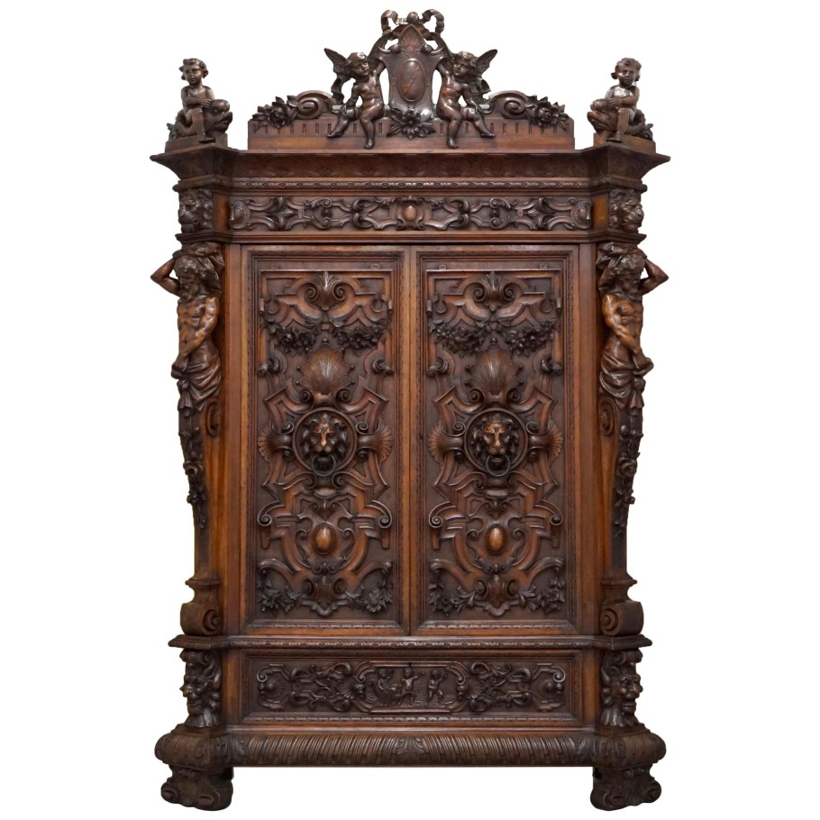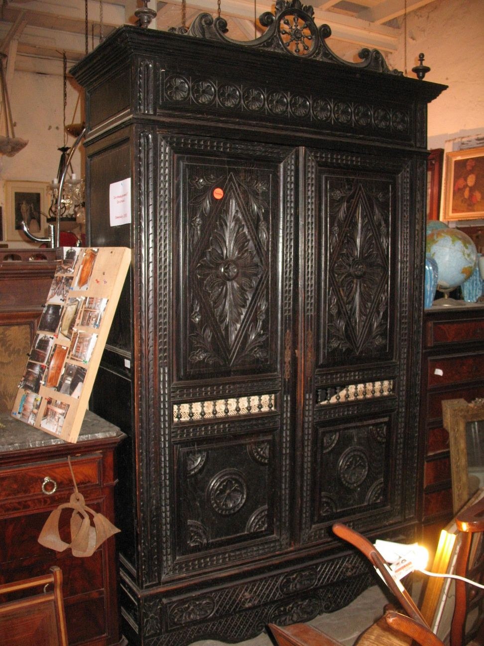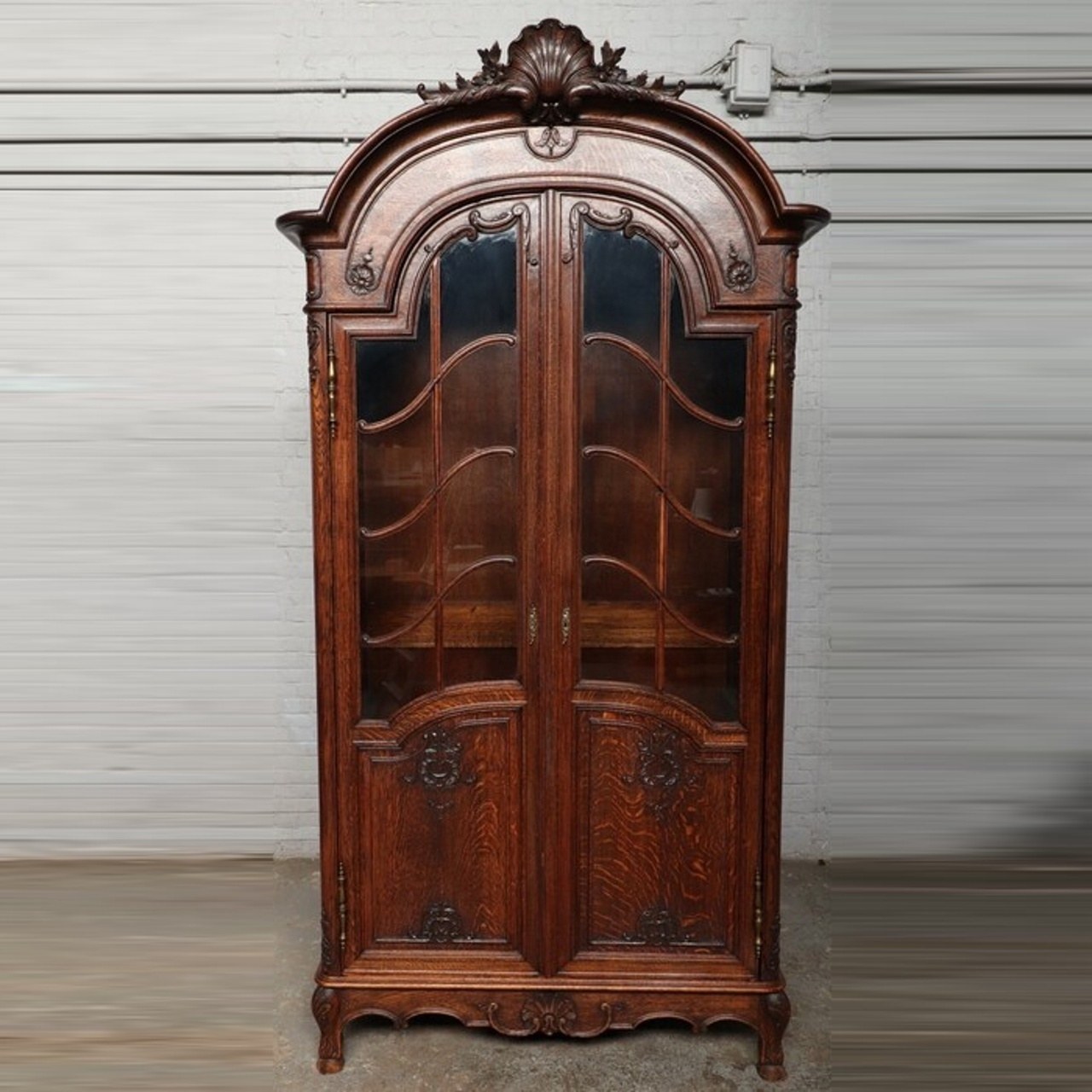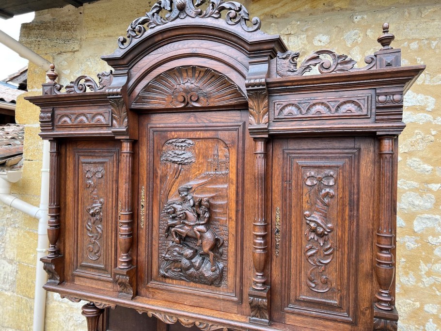 Антикварный дубовый шкаф с резным навершием (76 фото)