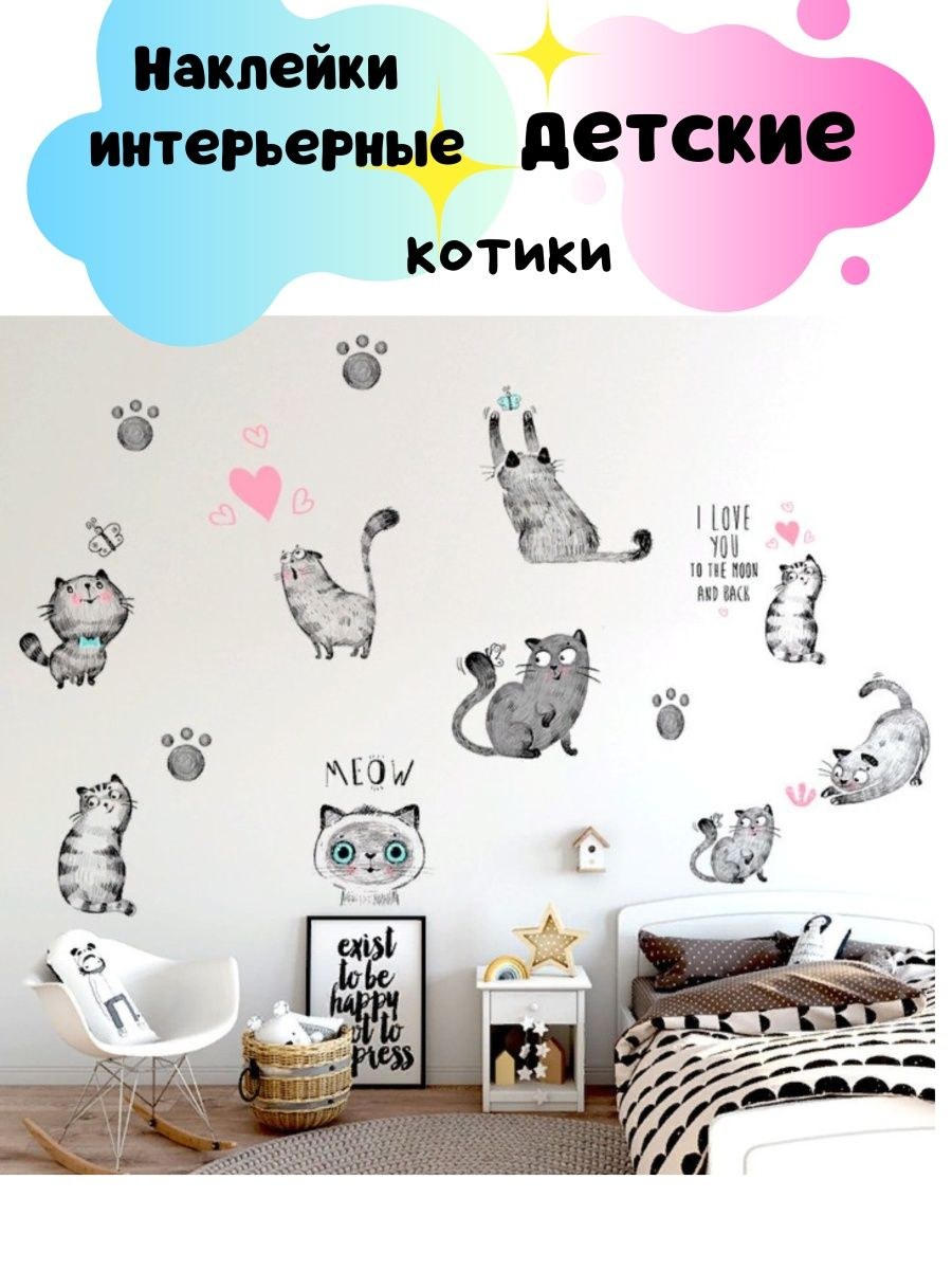 Набор интерьерных наклеек забавные котики (42 фото)