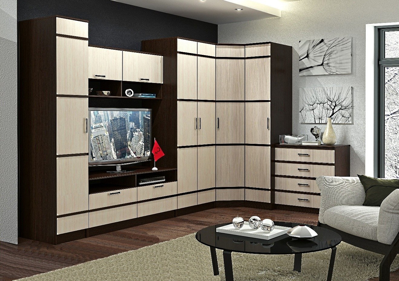 Стенка в гостиную в современном стиле