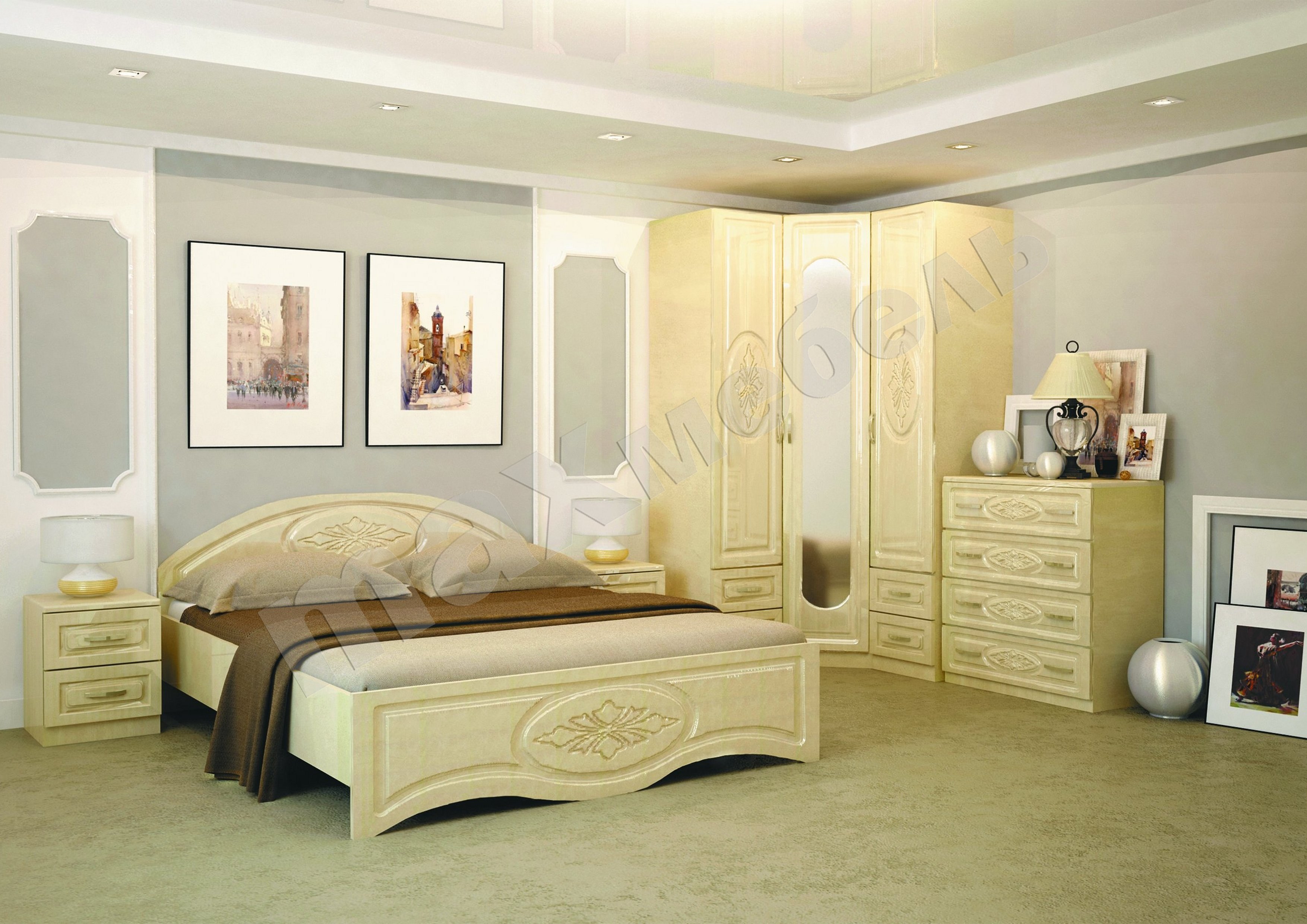 Спальный гарнитур Флоренция светлый беж глянцевая
