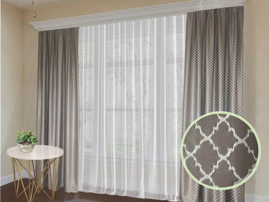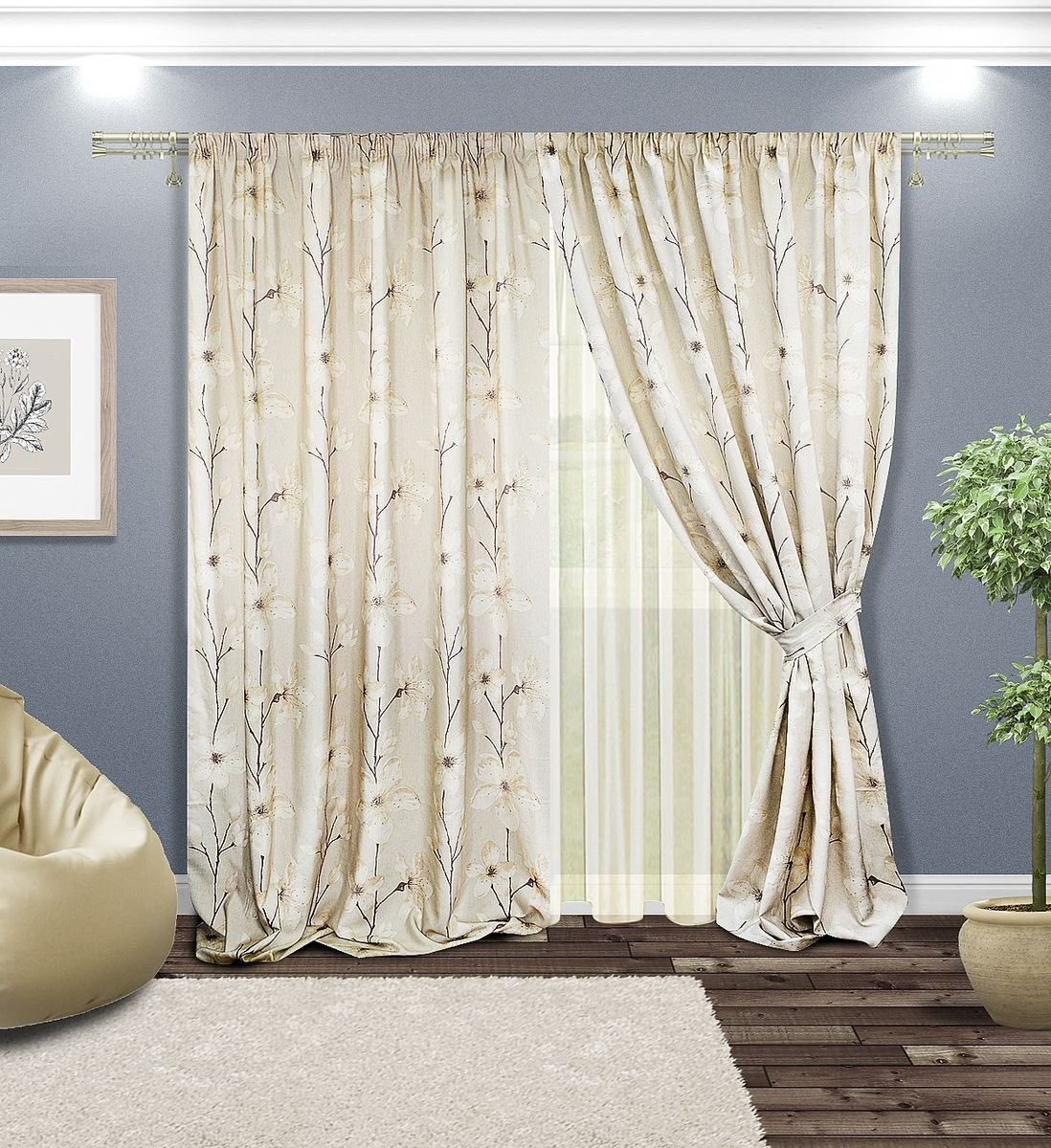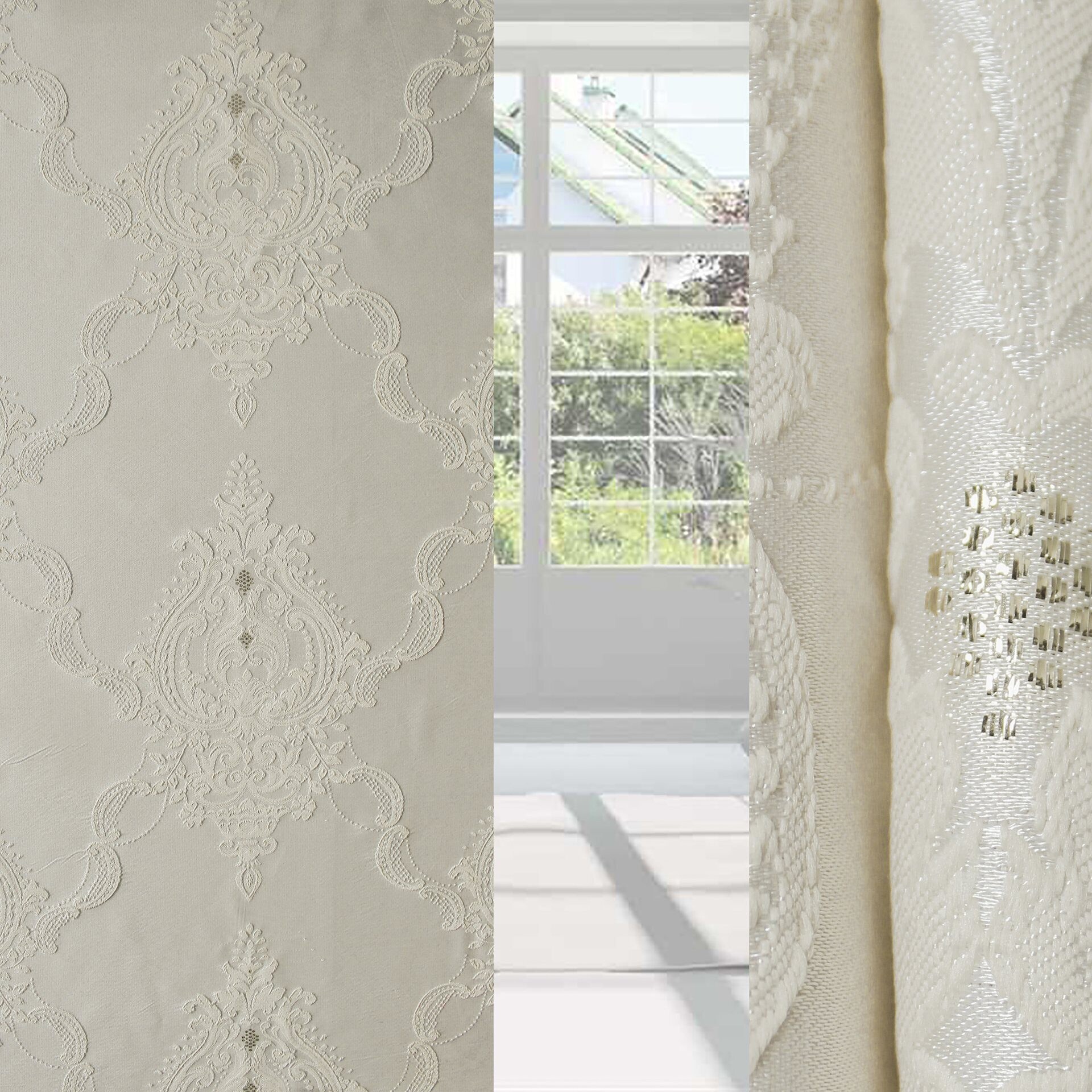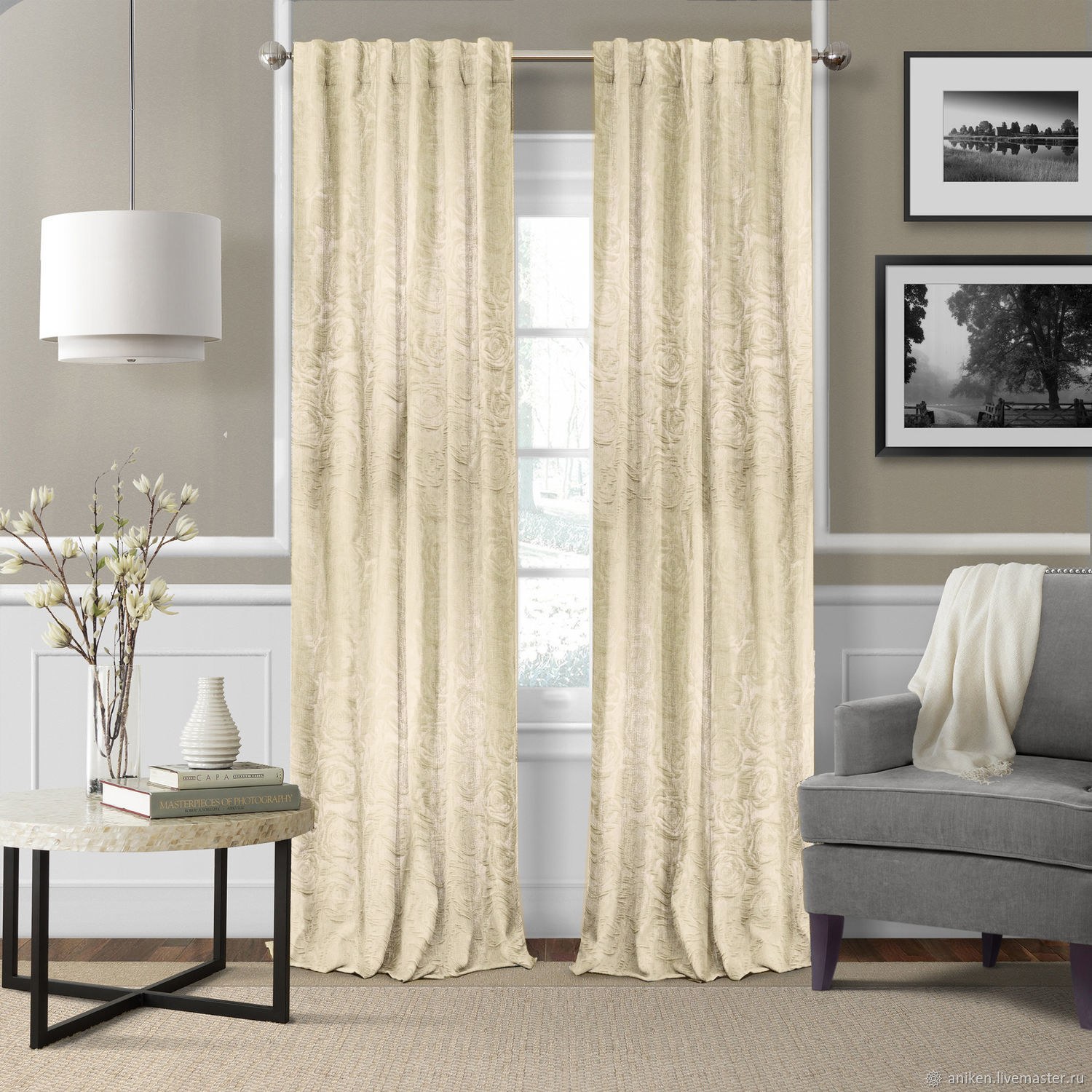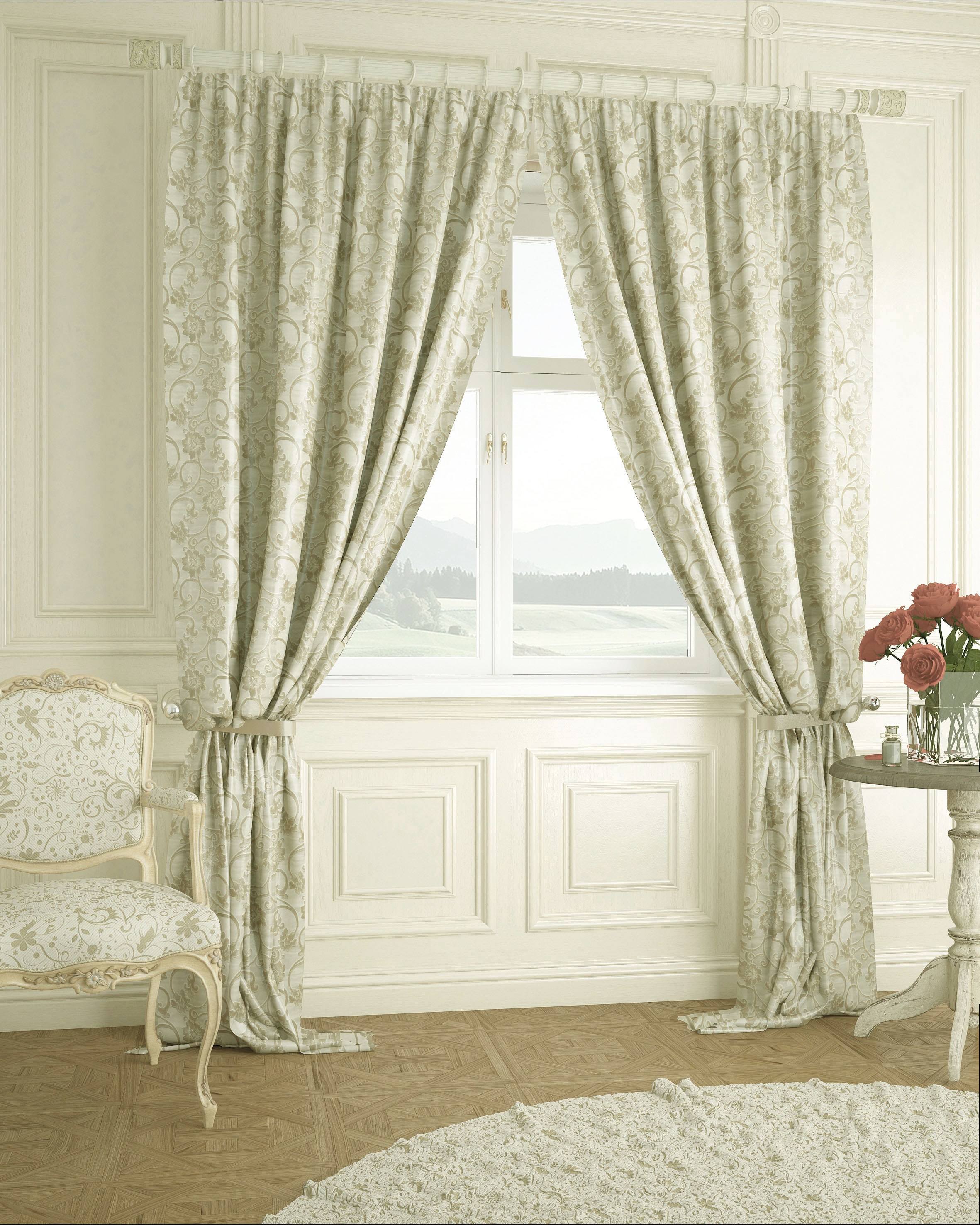 Жаккардовые занавески цвета слоновой кости (72 фото)