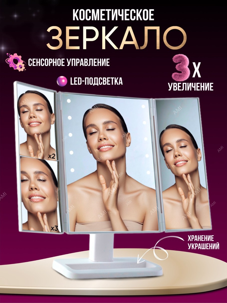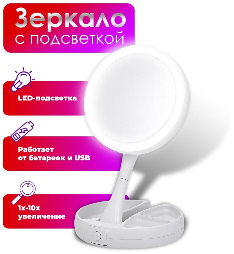 Зеркало косметическое настольное Tatkraft valge (20535) с подсветкой