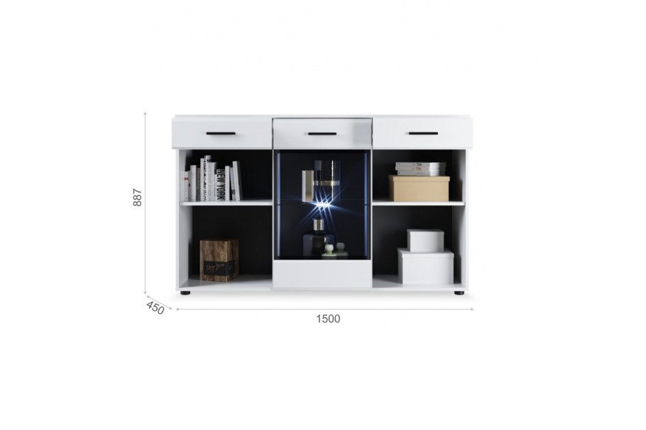 Комод Йорк 2д1в2ящ белый/белый глянец