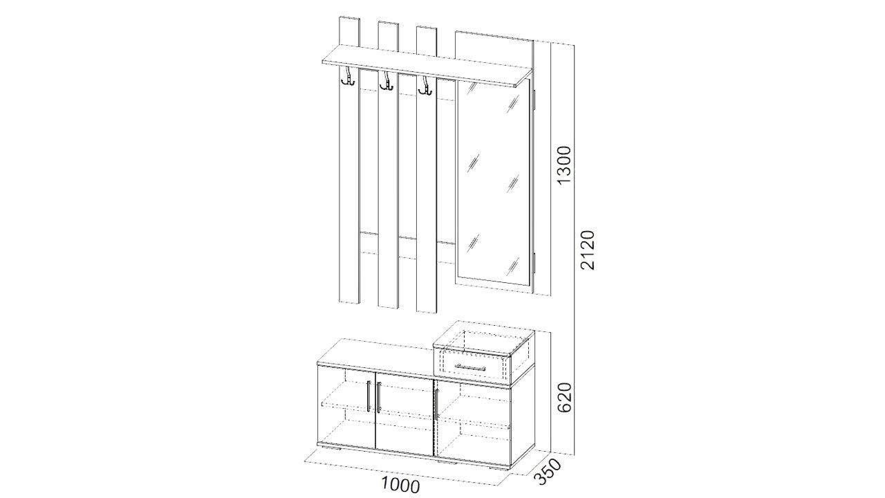 Прихожая №3 вешалка с зеркалом 1,0 м венге/ясень Анкор светлый