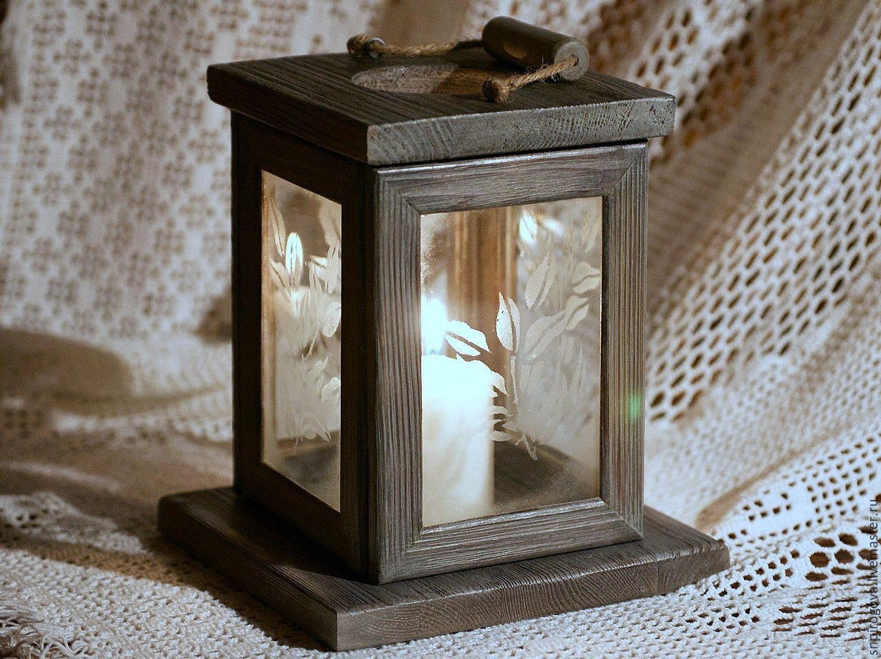 Деревянный фонарь для свечи
