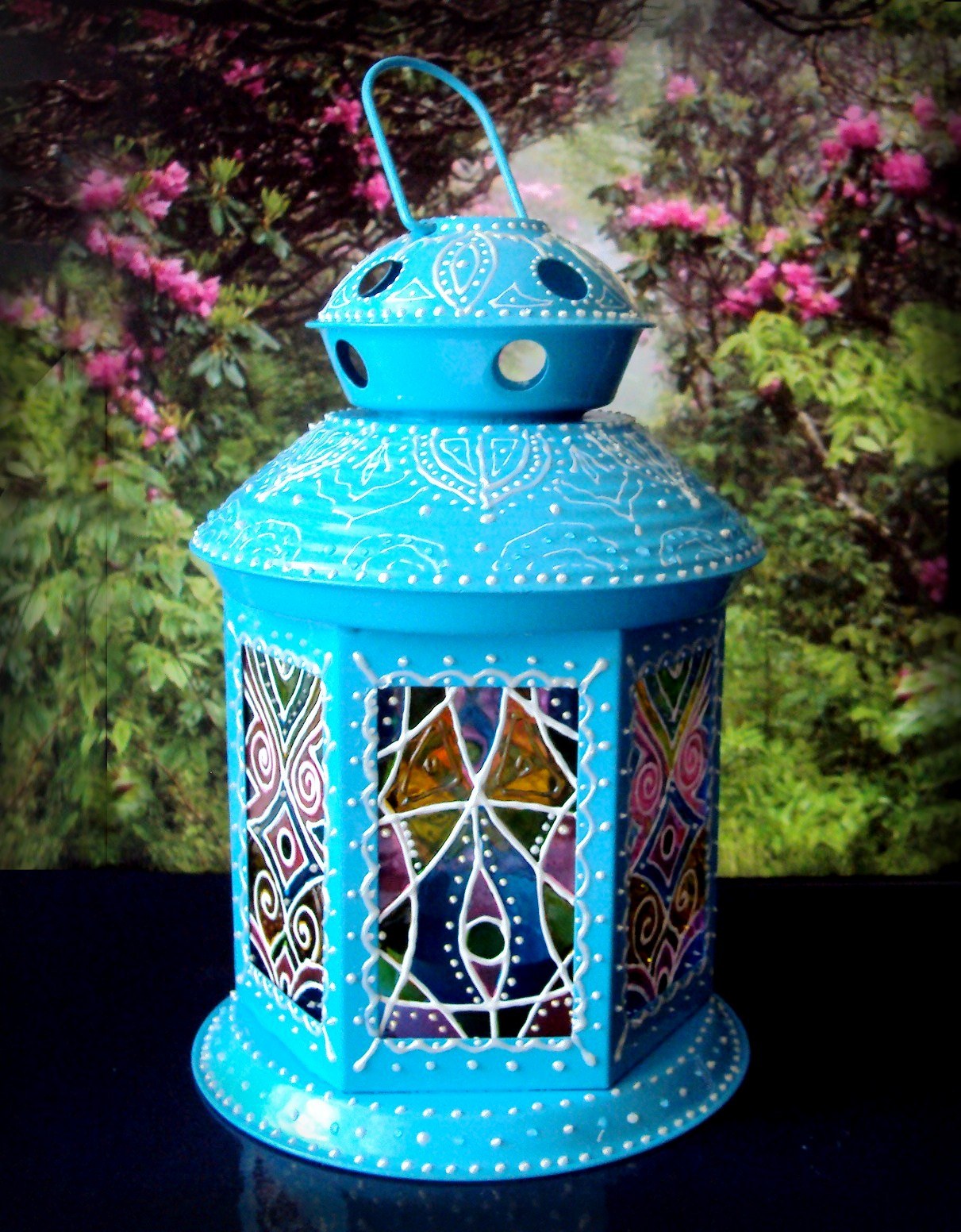Декоративный фонарь с цветами