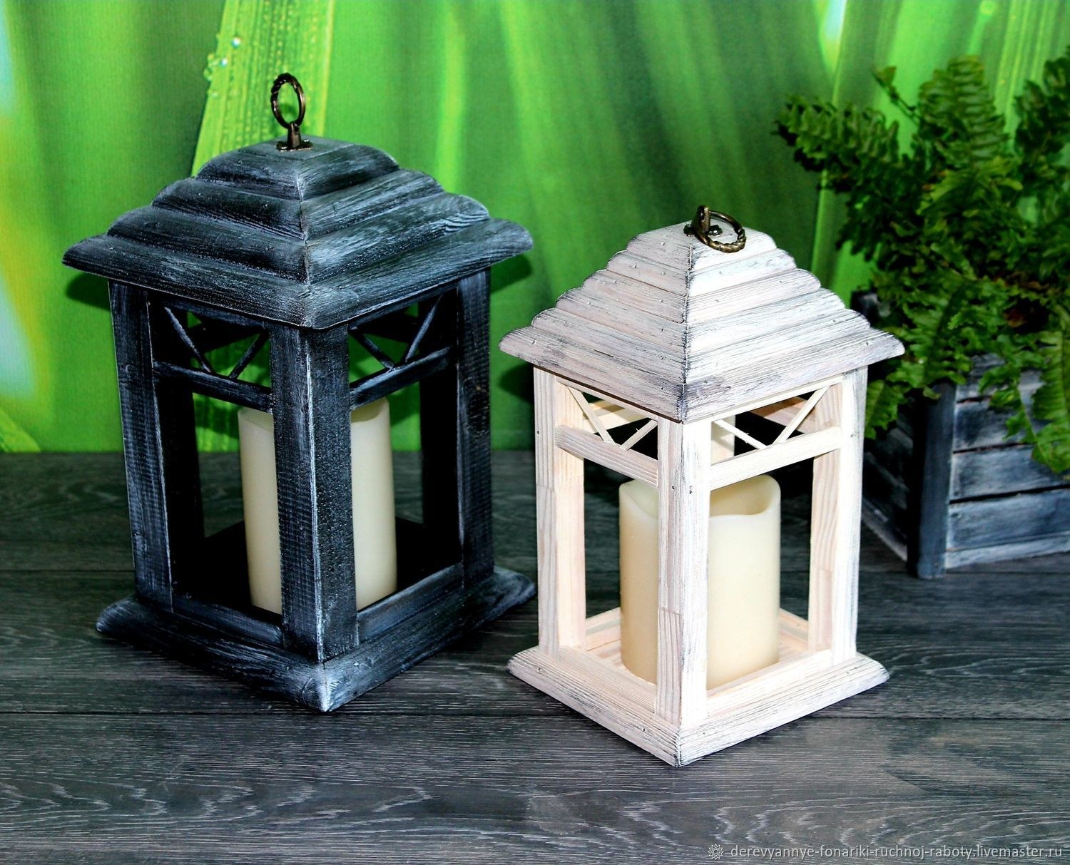 Деревянные фонари для декора