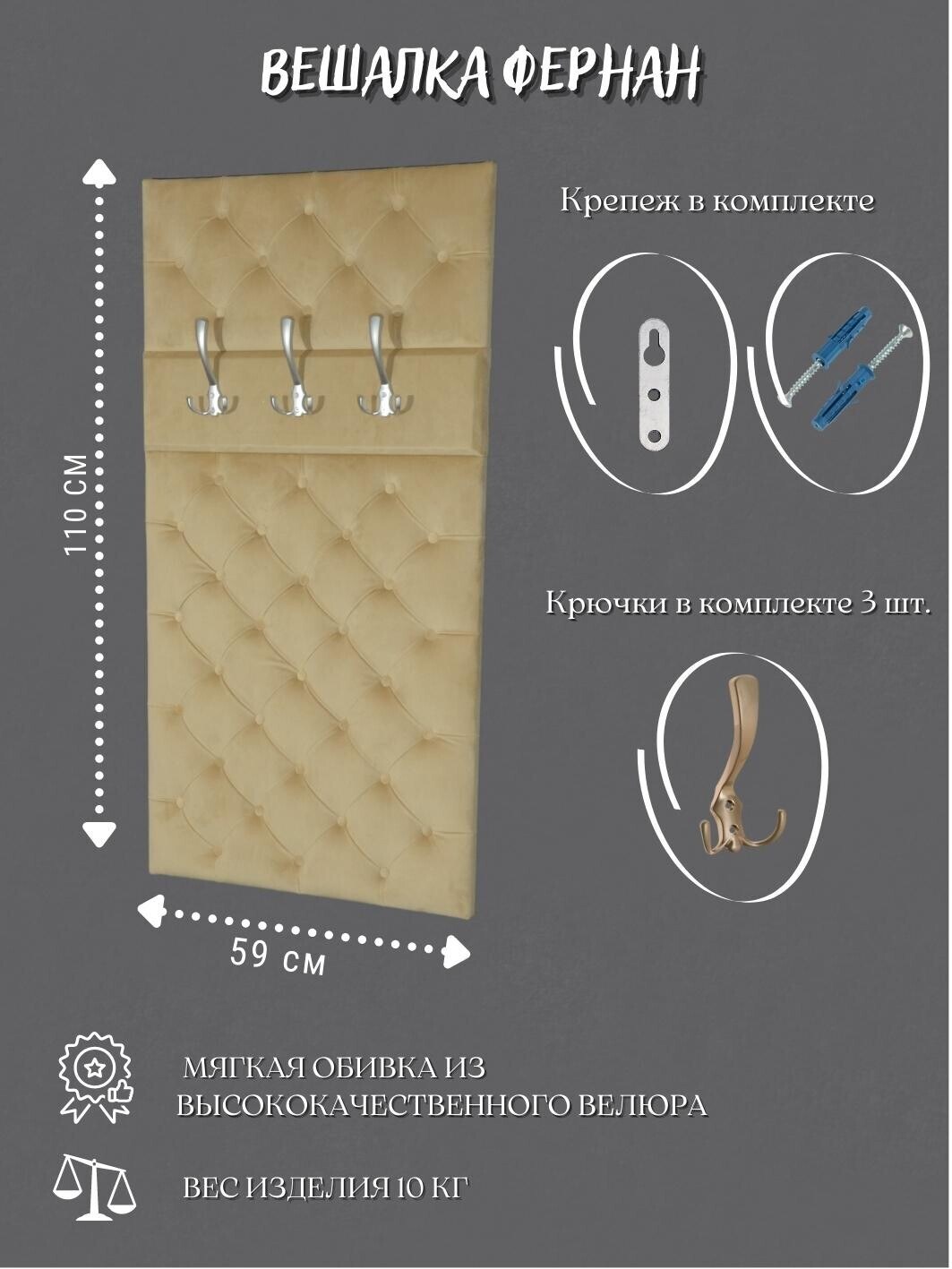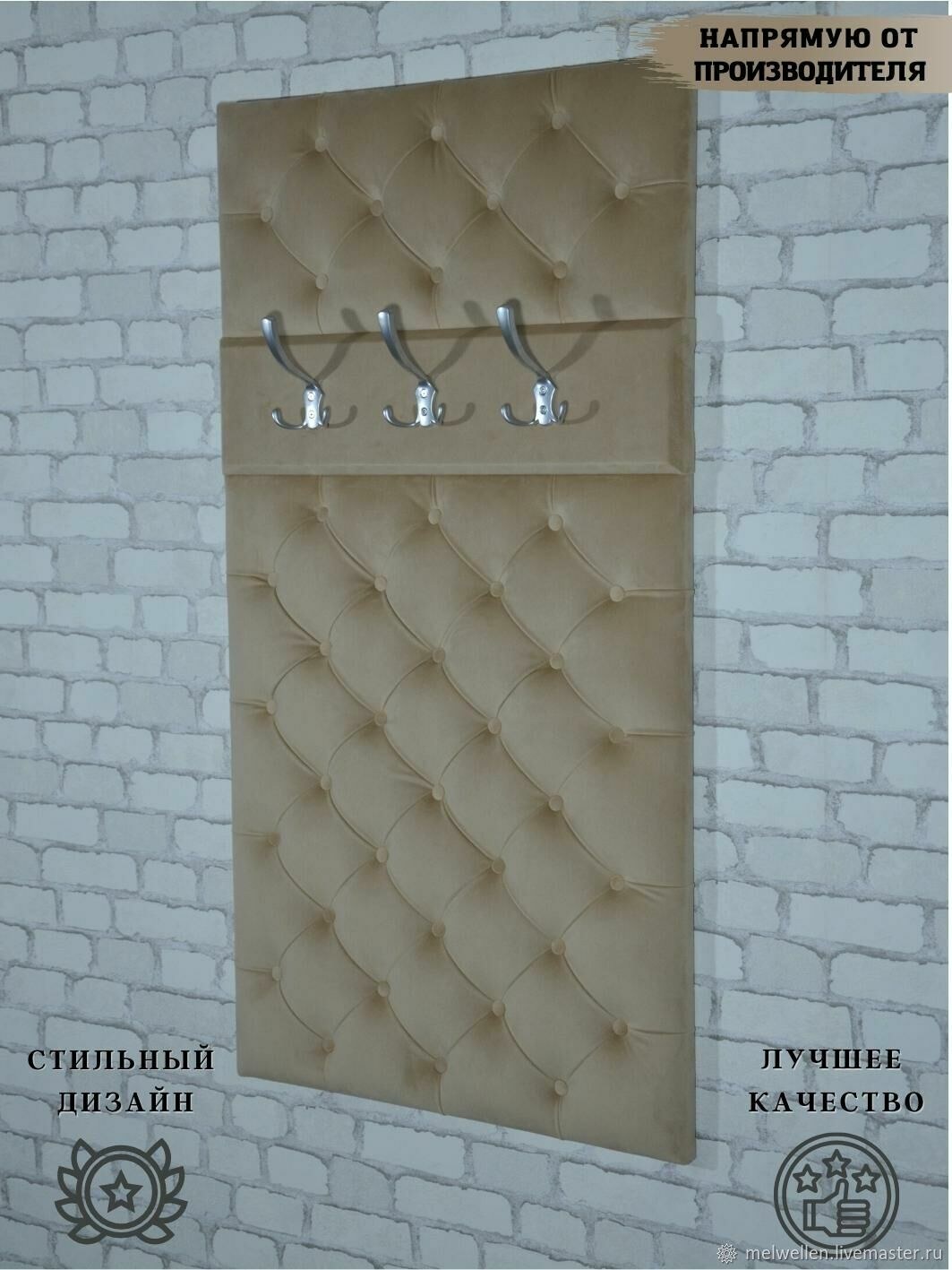 Вешалка настенная в прихожую из велюра, в квартиру melwellen