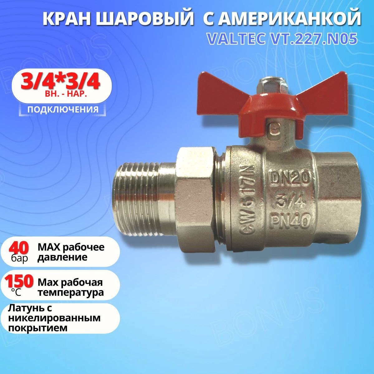 Кран шаровый "Pride", 3/4, бабочка, наружная/наружная. 47.304.20