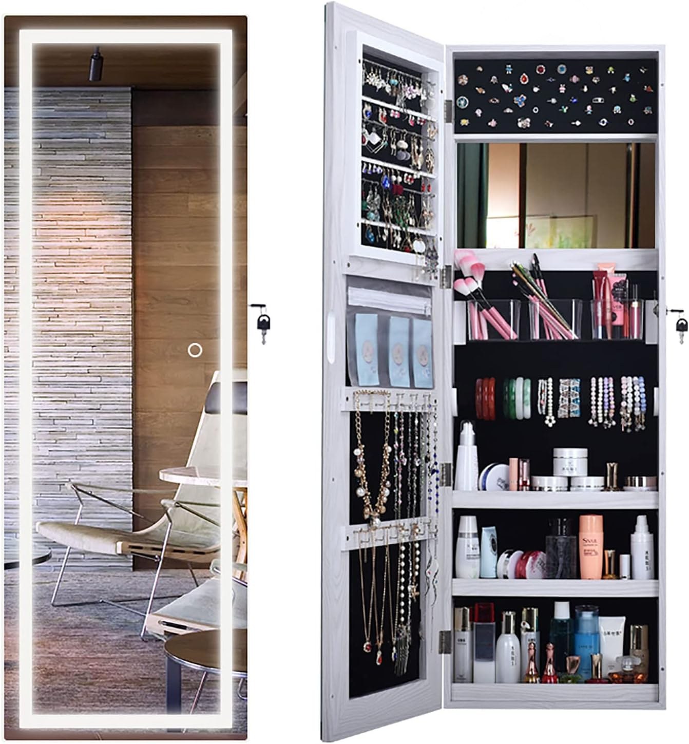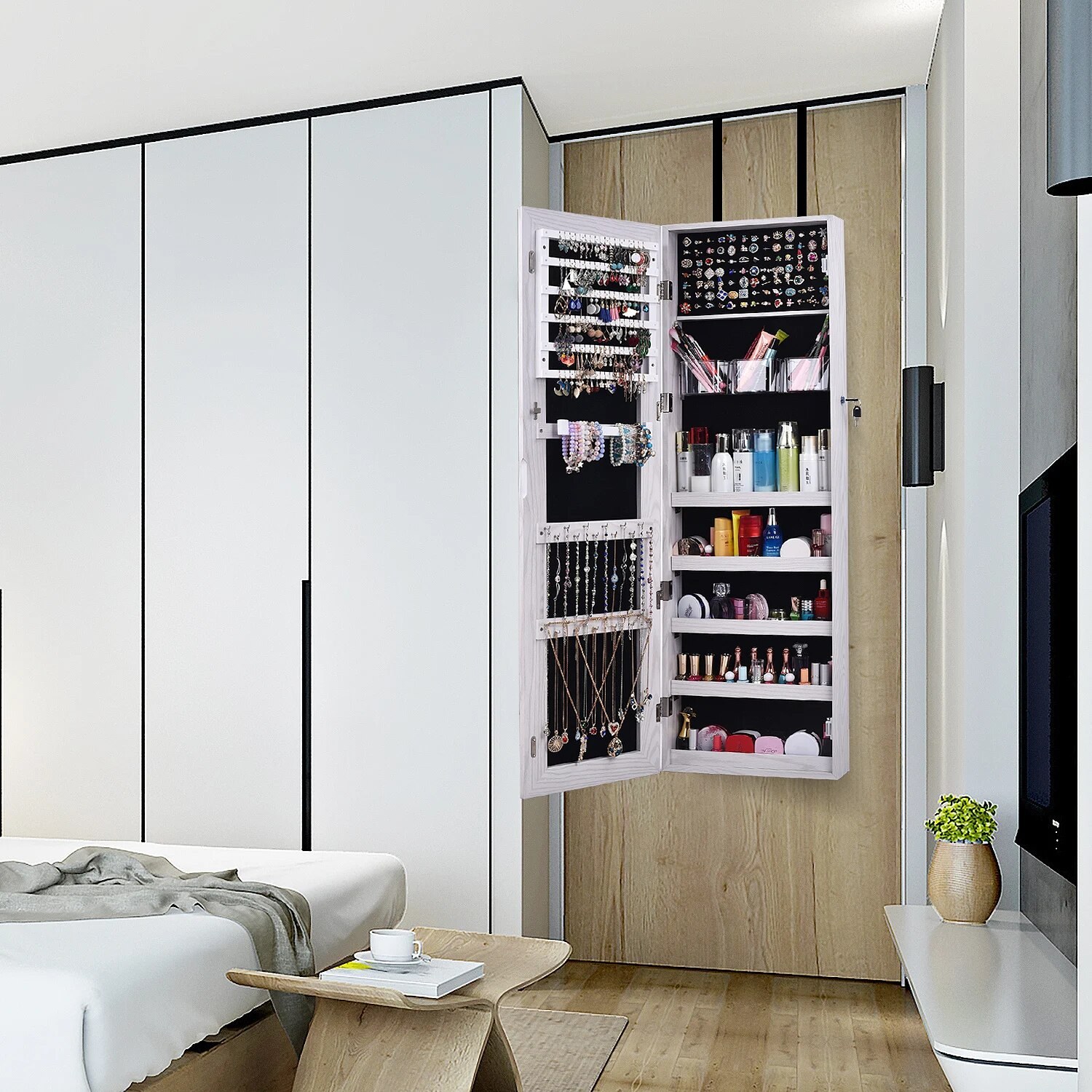 Настенный шкаф-зеркало для украшений Smart Bird Omi-25 Pro с подсветкой