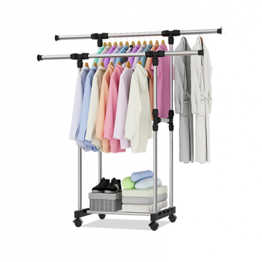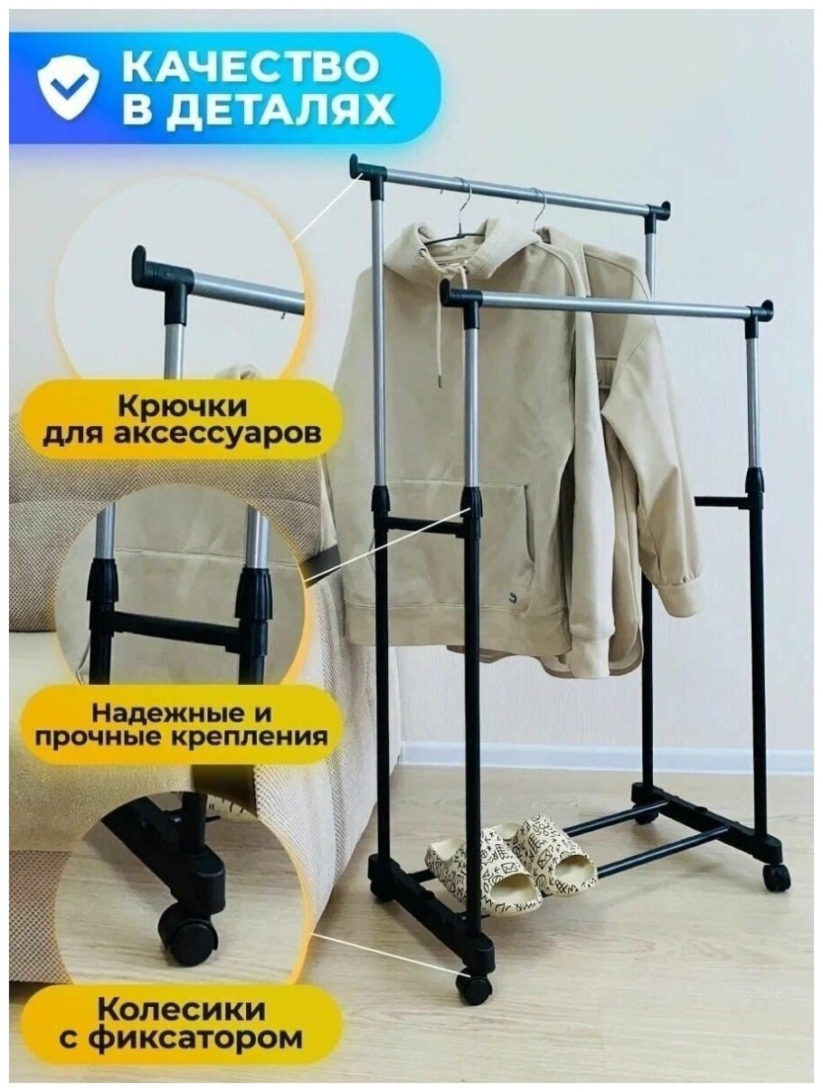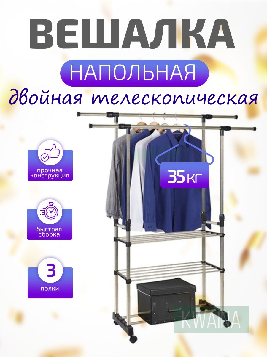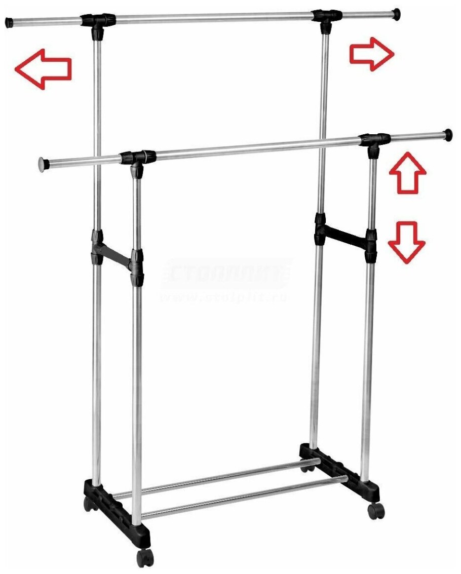 Напольная вешалка для одежды Double-Pole двойная на роликах Telescopic