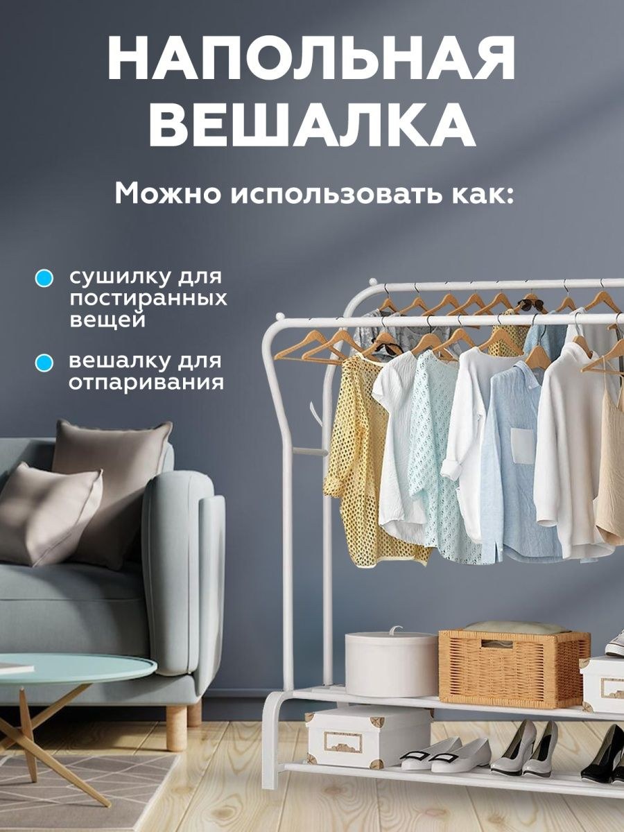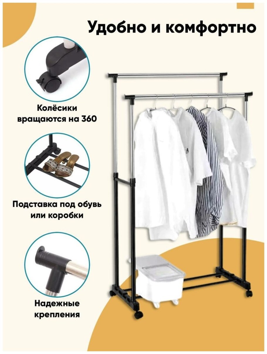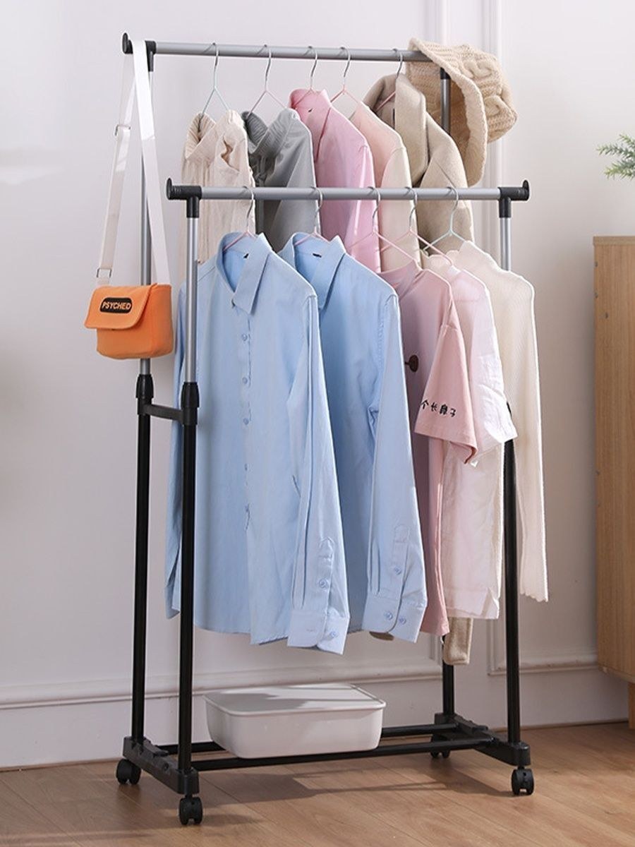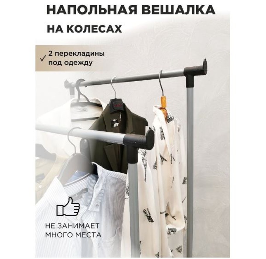 Напольная вешалка для одежды Double-Pole двойная на роликах Telescopic