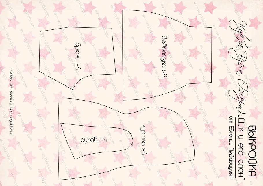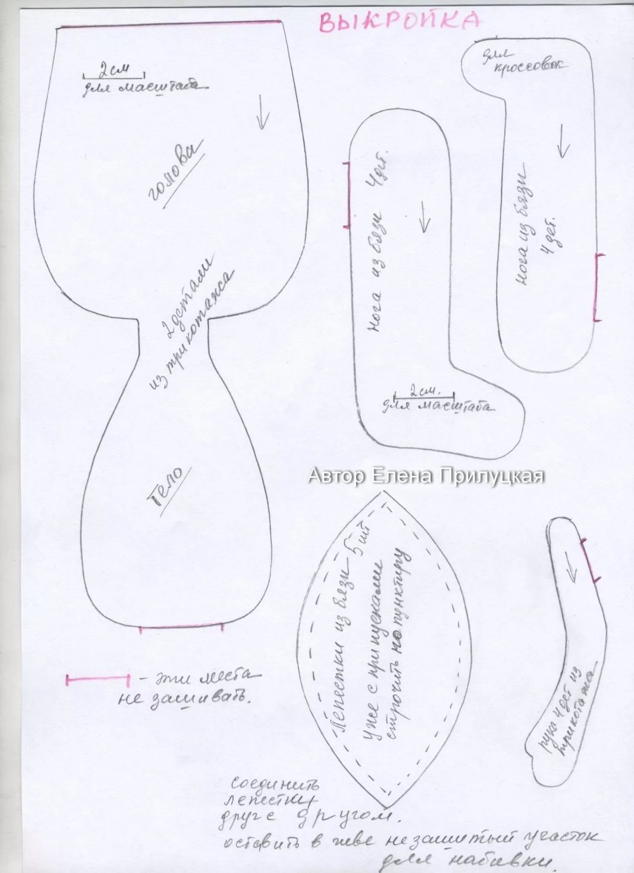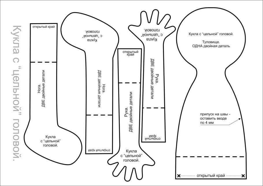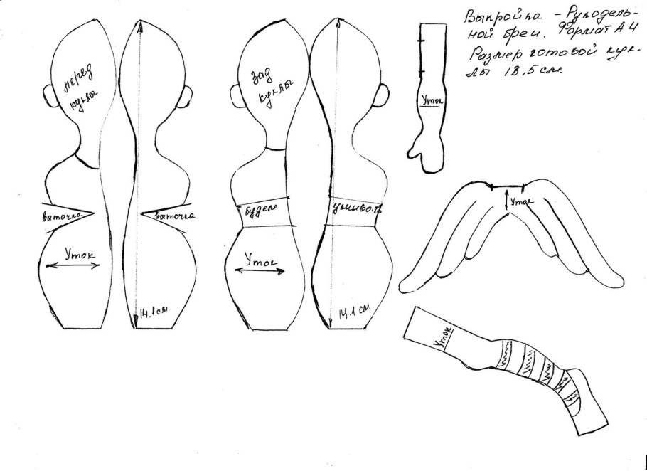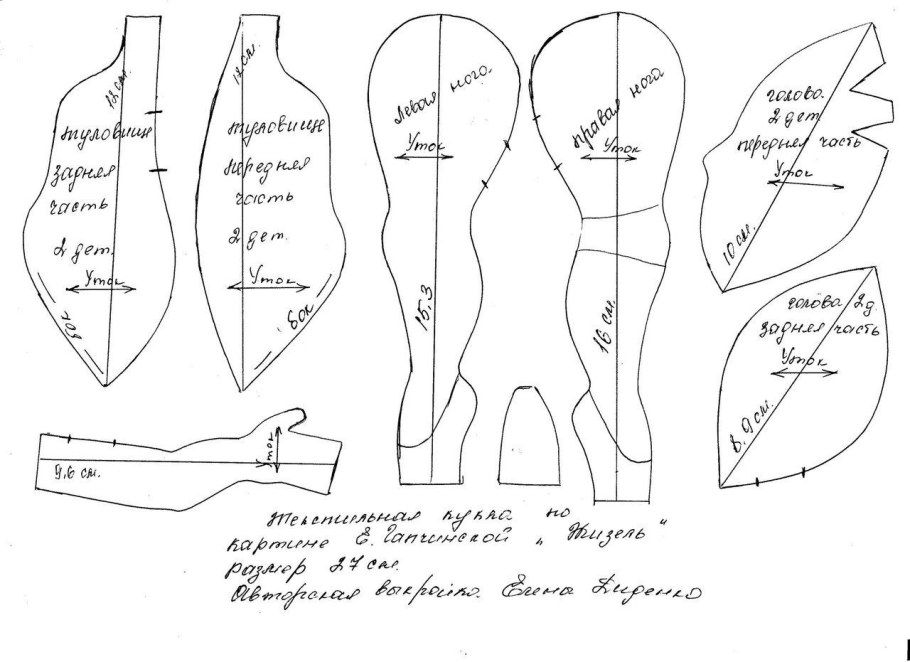 Выкройка текстильной шарнирной куклы Елены Негороженко