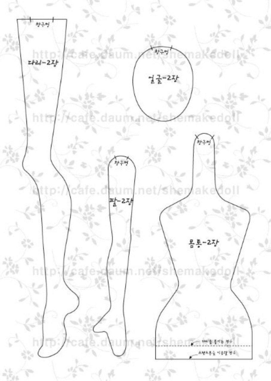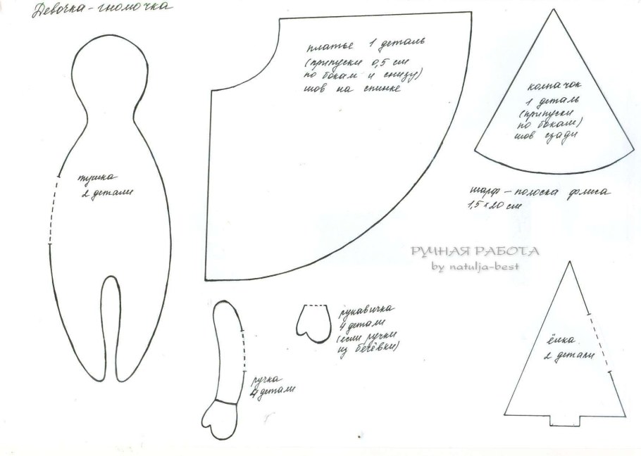 Выкройка куклы снежки в натуральную величину в сантиметрах