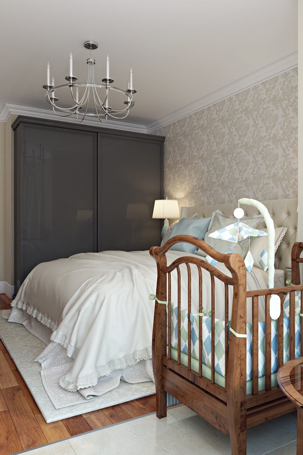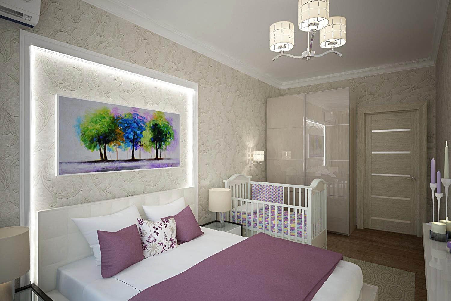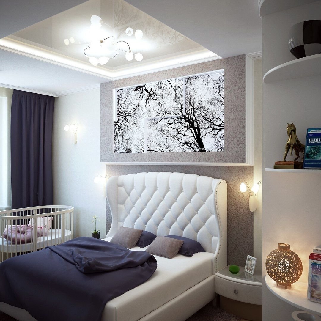 Спальня совмещенная с детской кроваткой