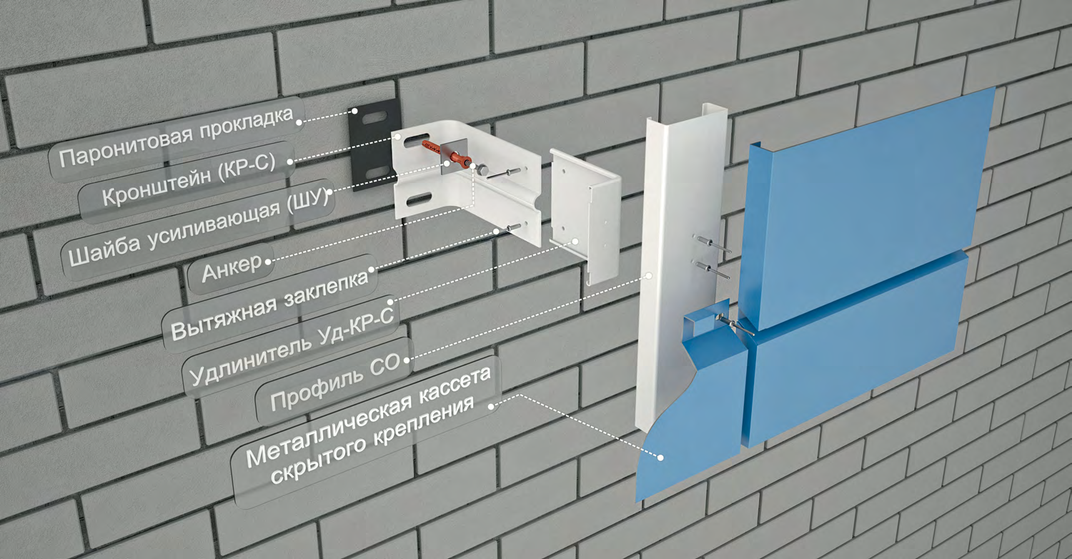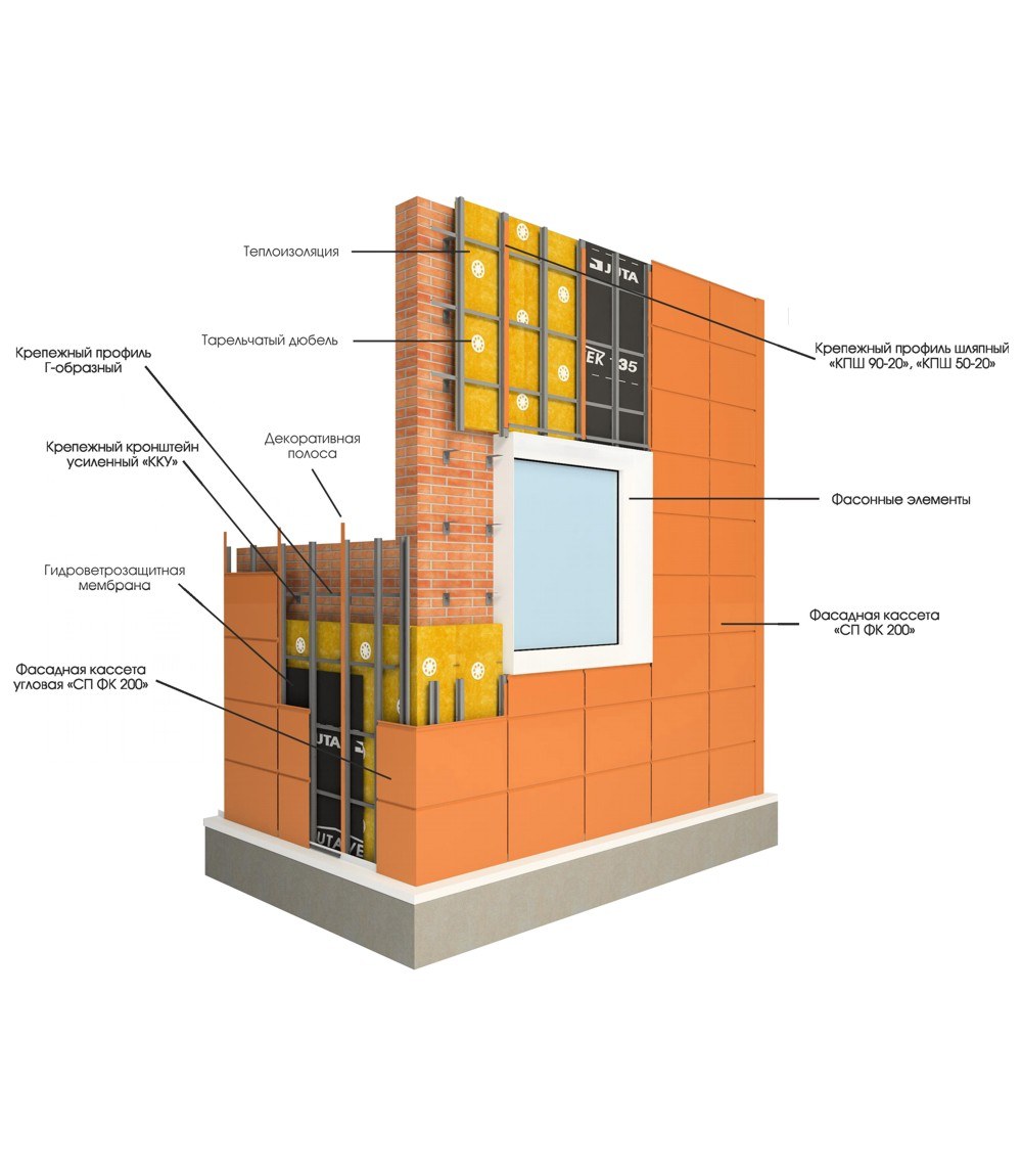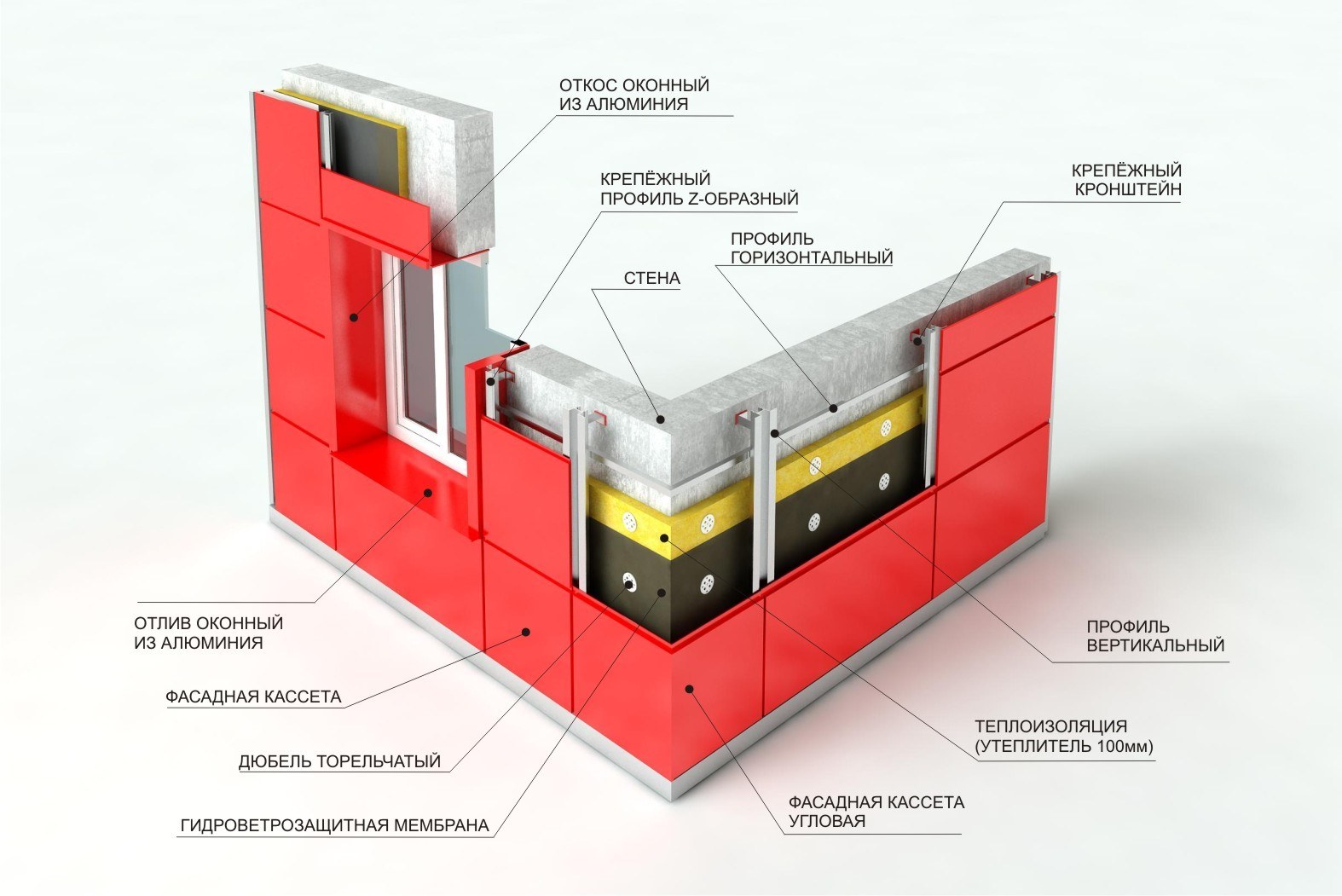 Вентилируемый фасад РУСЭКСП металлокассеты