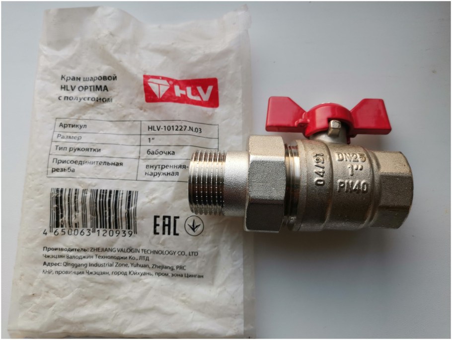 Кран шаровый НР-ВР 1" (бабочка) HLV