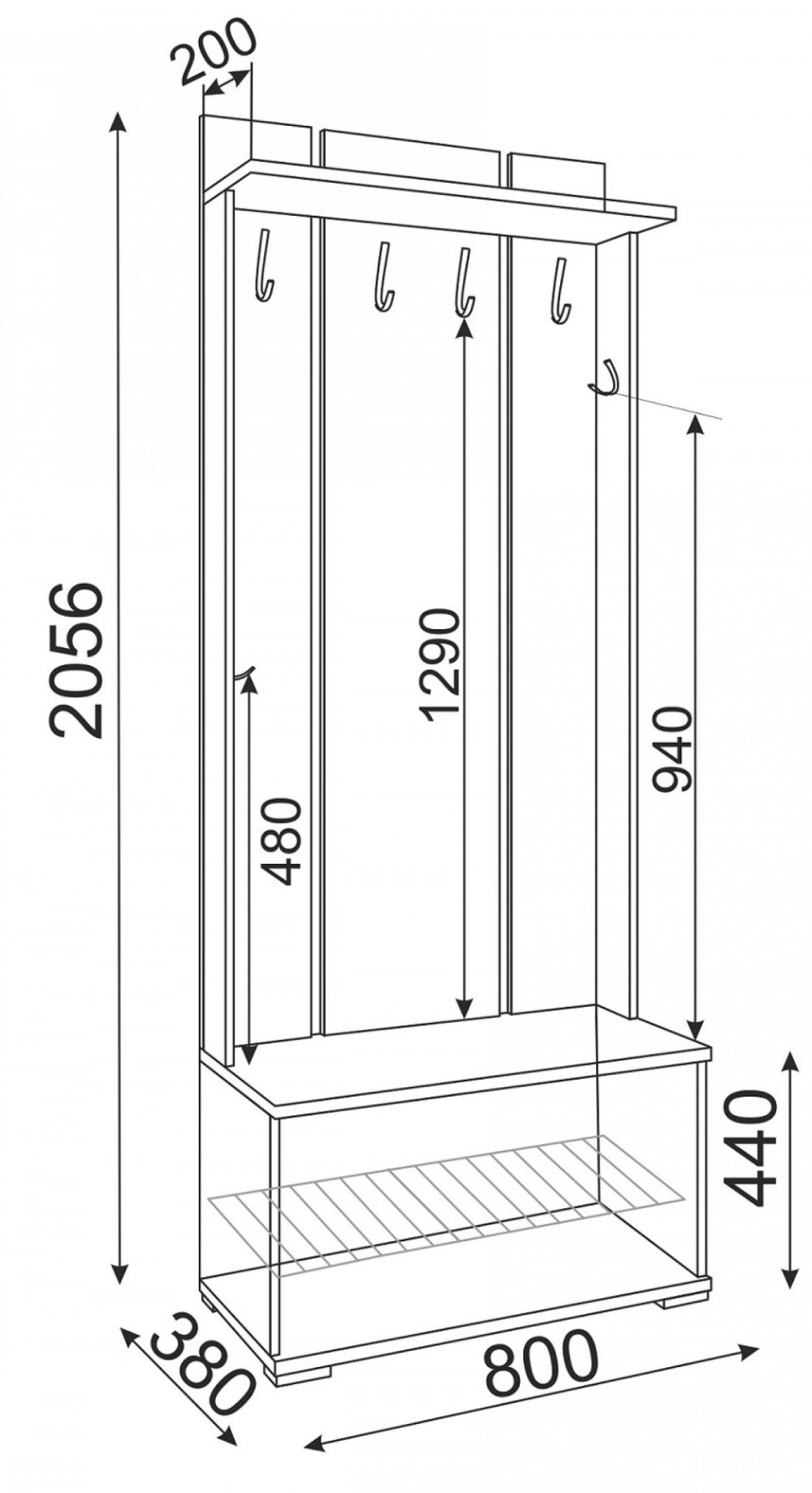 Вешалка настенная с полкой «комфорт», 7 крючков, 45×11×55 см, цвет чёрный