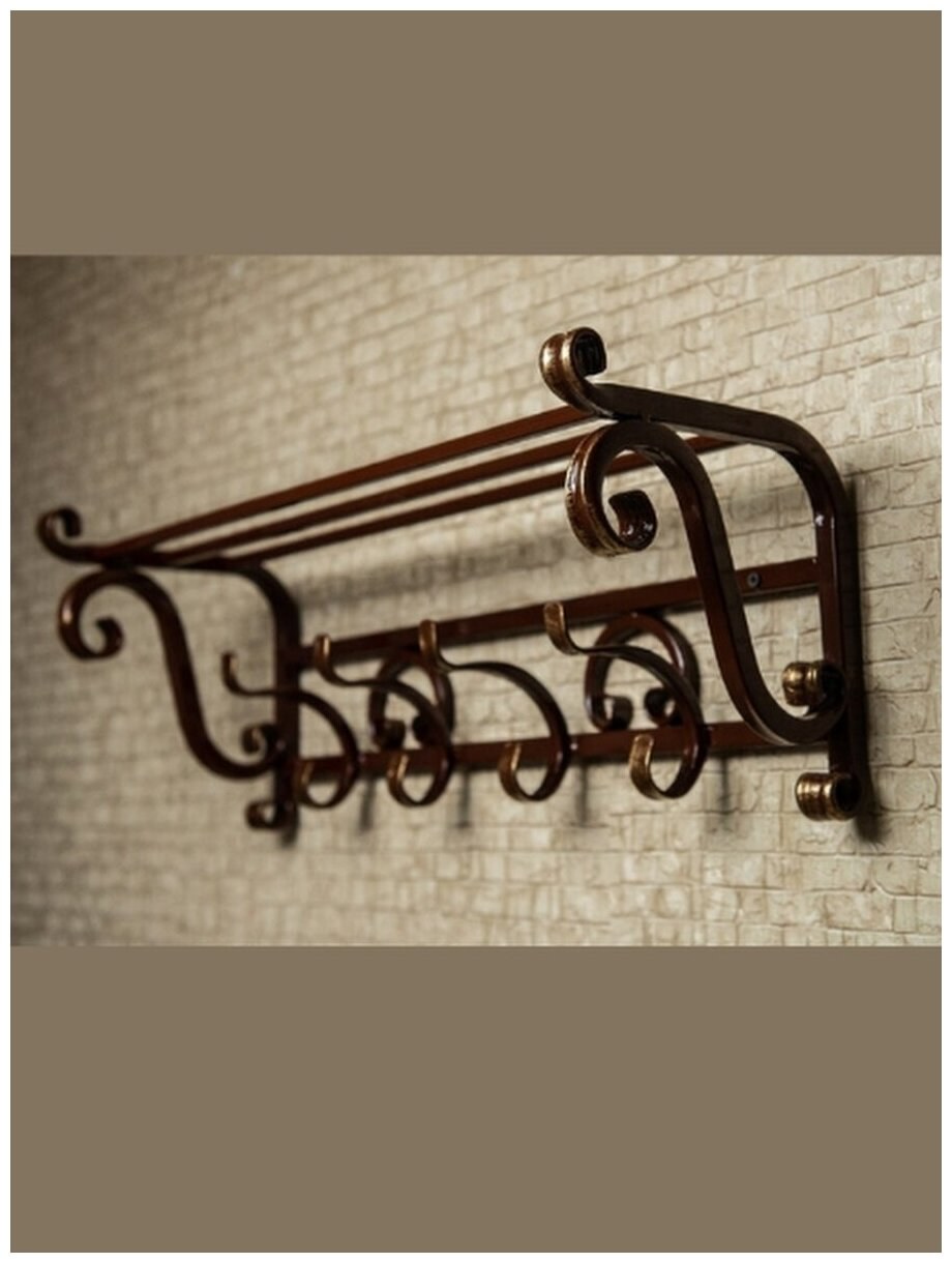 Вешалка настенная металл. С полкой 80см (6 рож.антик)///29154