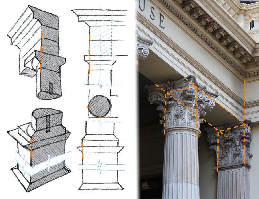 Коринфский, ионический, дорический, Тосканский ордеры.