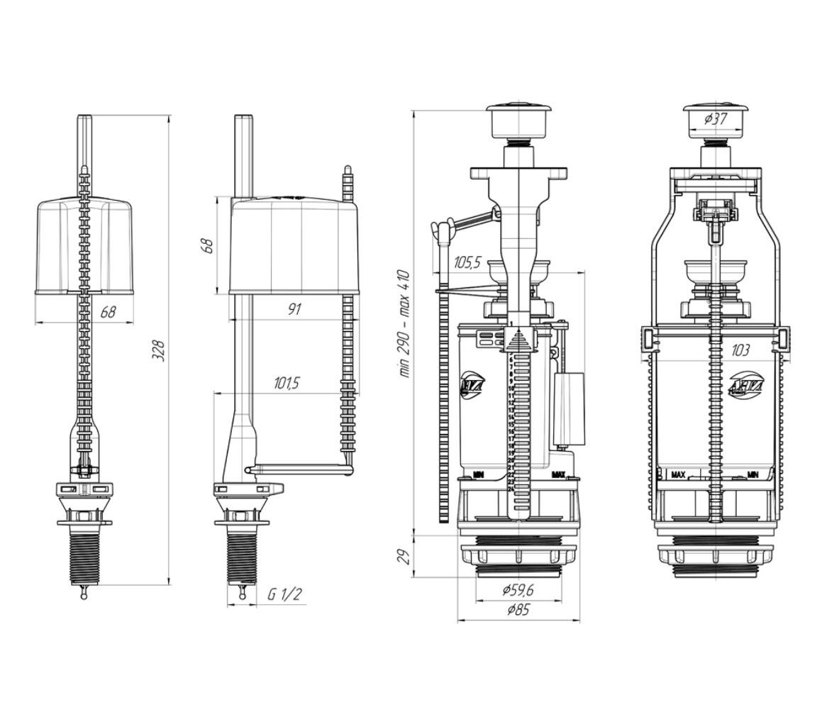 Арматура сливная для унитаза WRAS ATS5200.017.