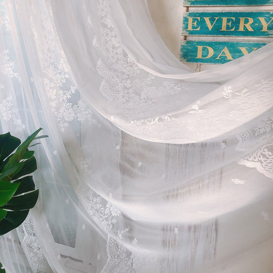 Белые кружевные тюлевые шторы для спальни (65 фото)