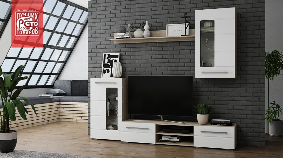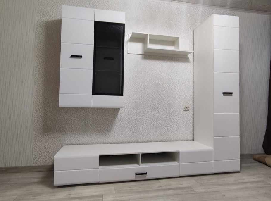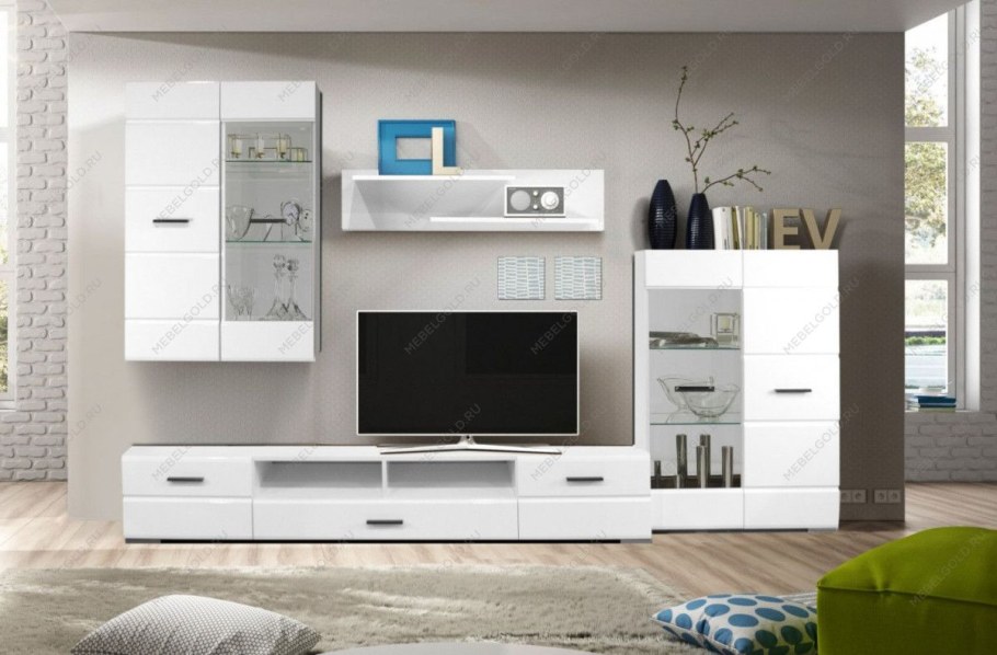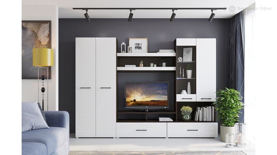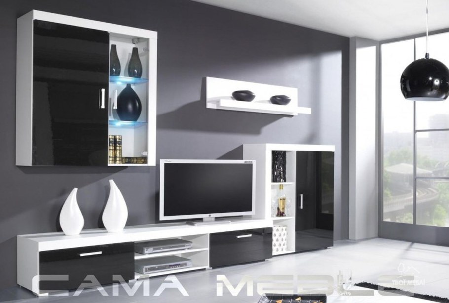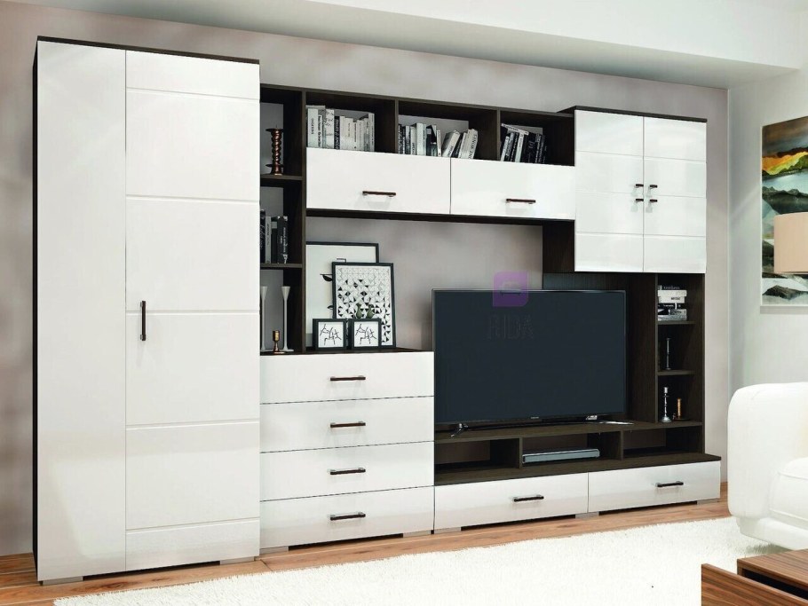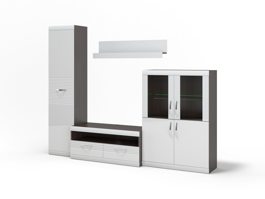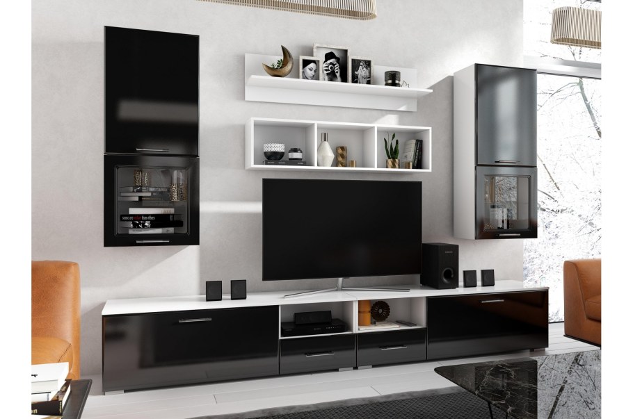 Гостиная Жак, 2800х450х2200, черный глянец МДФ/ белый ЛДСП