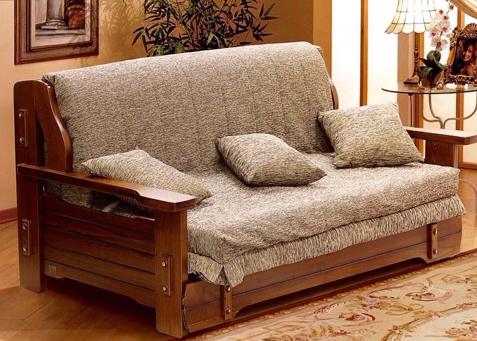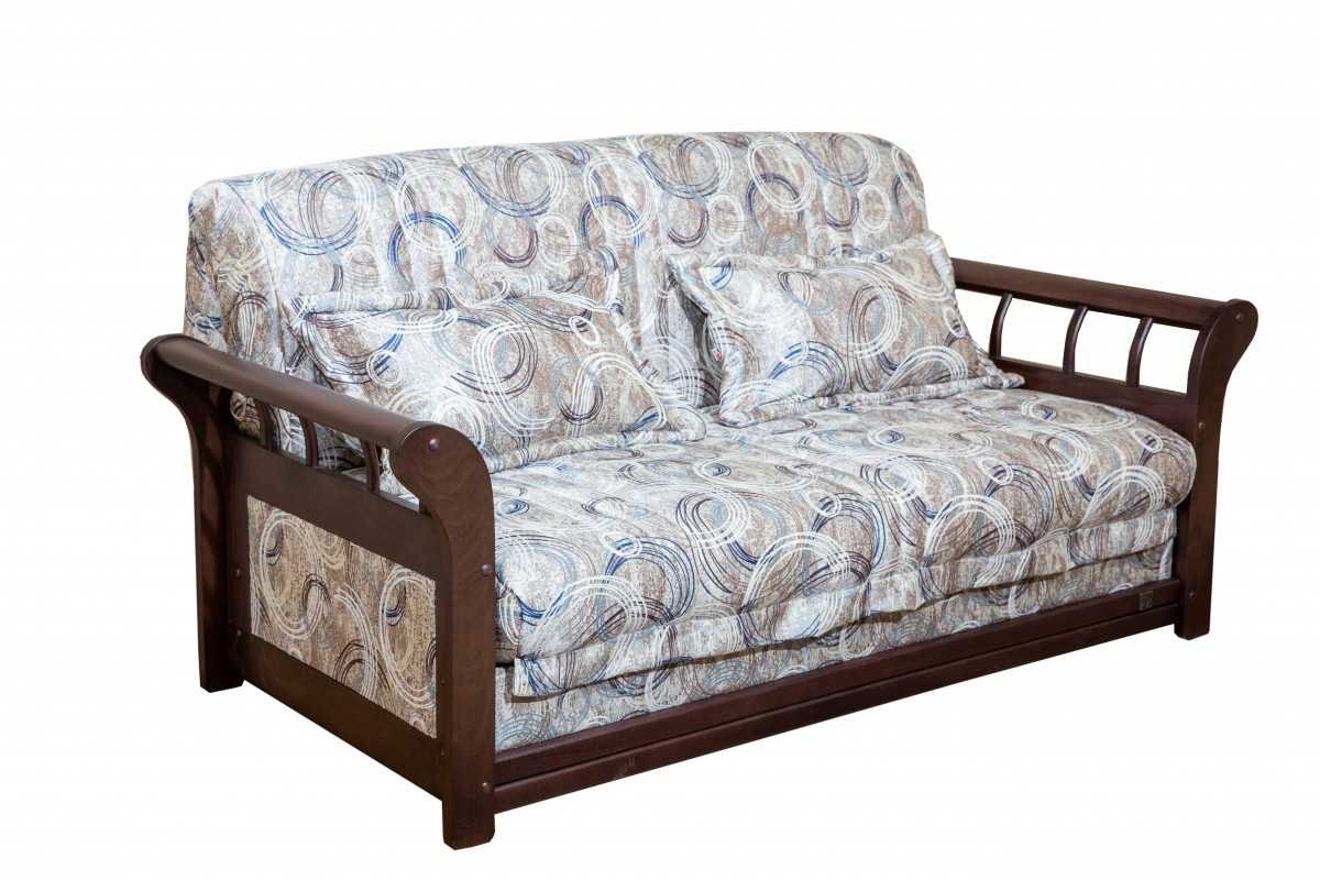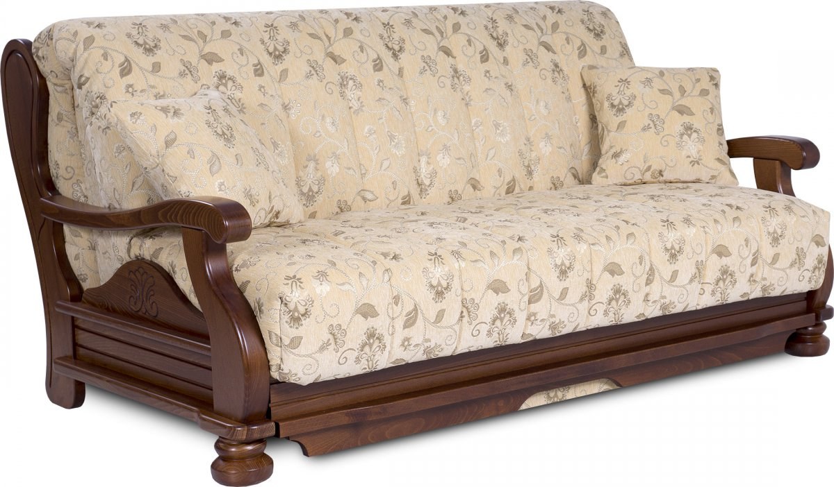 Диван раздвижной с деревянными. Подлокотниками спальеместо 110