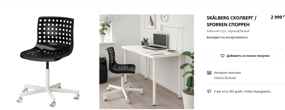 Стул компьютерный икеа белый СКОЛБЕРГ СПОРРЕН
