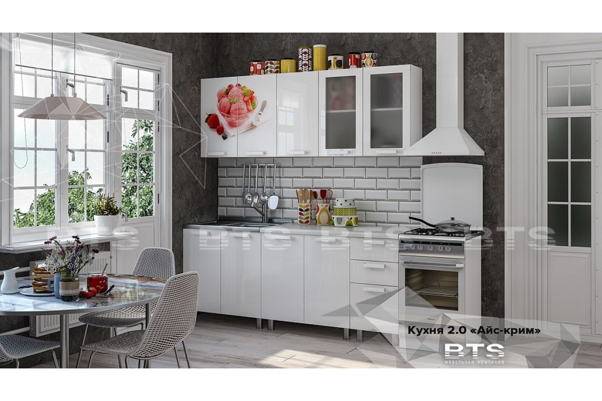 Кухня 2,0м "айс -Крим" (белый глянец) МДФ БТС