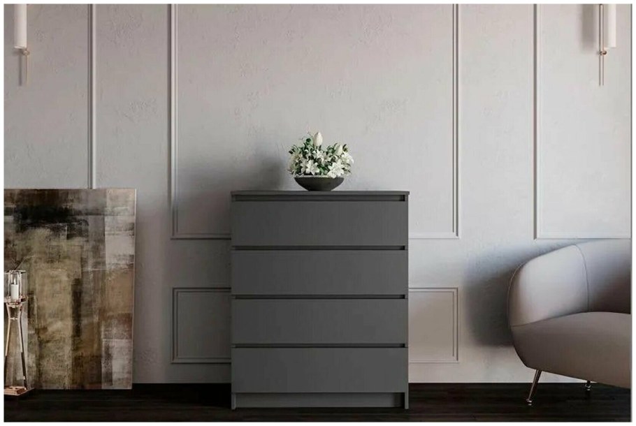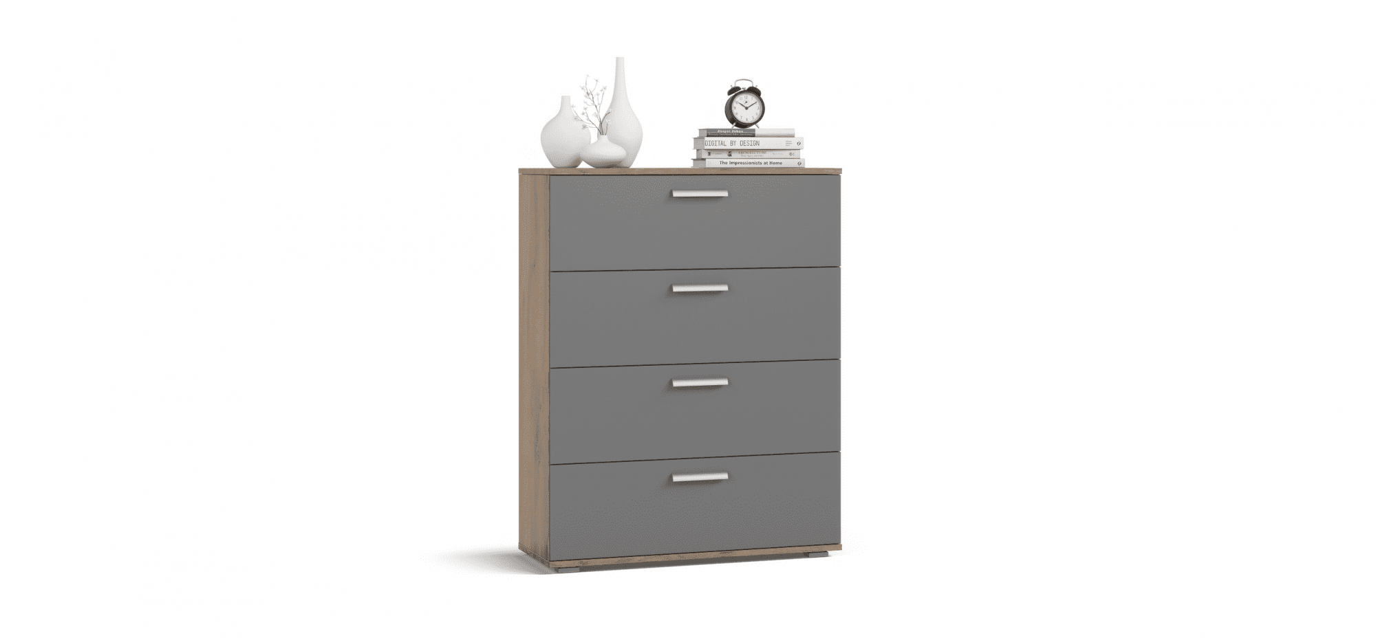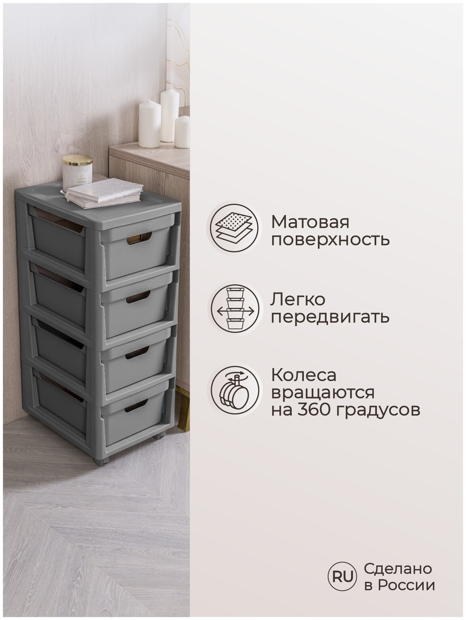 Комод на колесах Luxe, 4 ящика, 300х385х690 мм (серый)