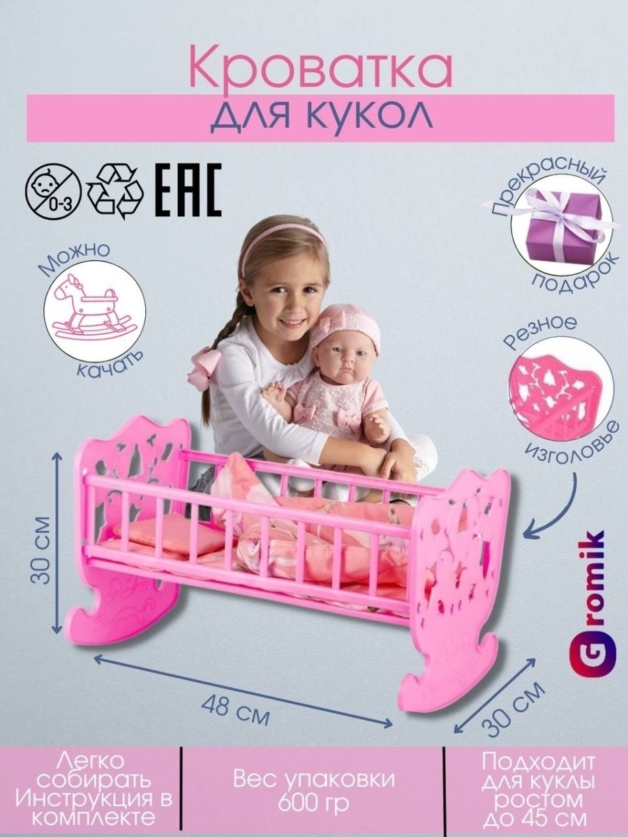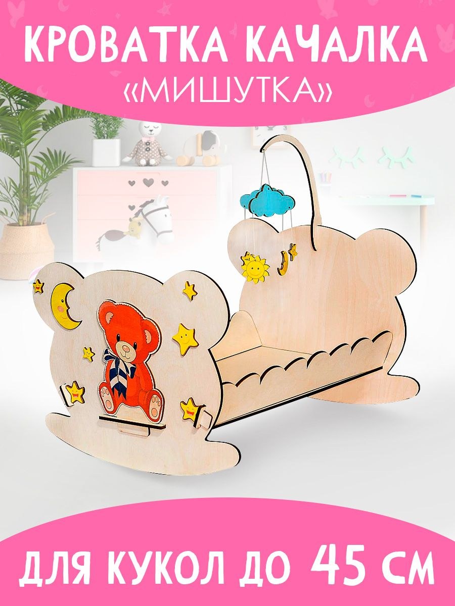 Кроватка-качалка для кукол №9 "Баюшка" (деревянная)
