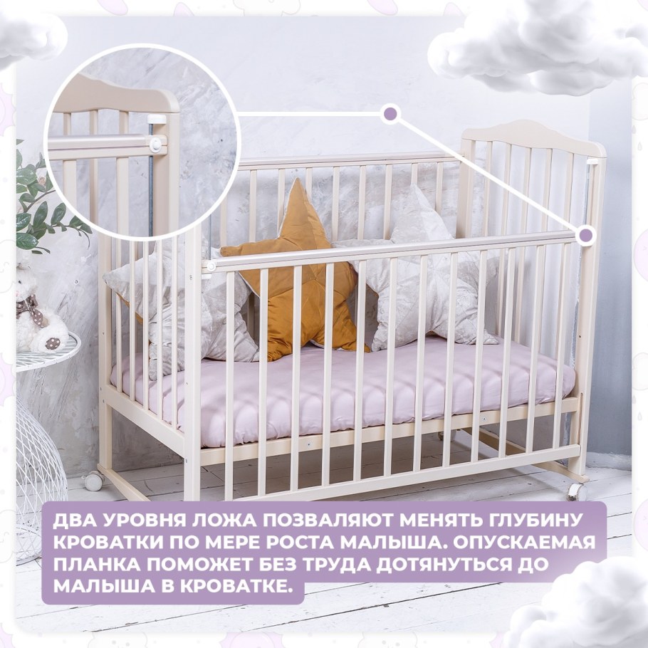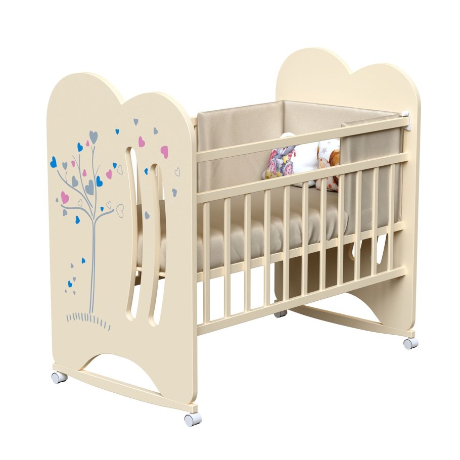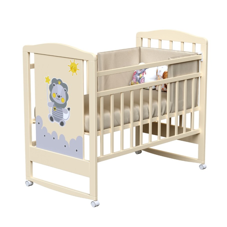 Кровать детская Морозко Кол/кач беж-сл кость птички 2-02