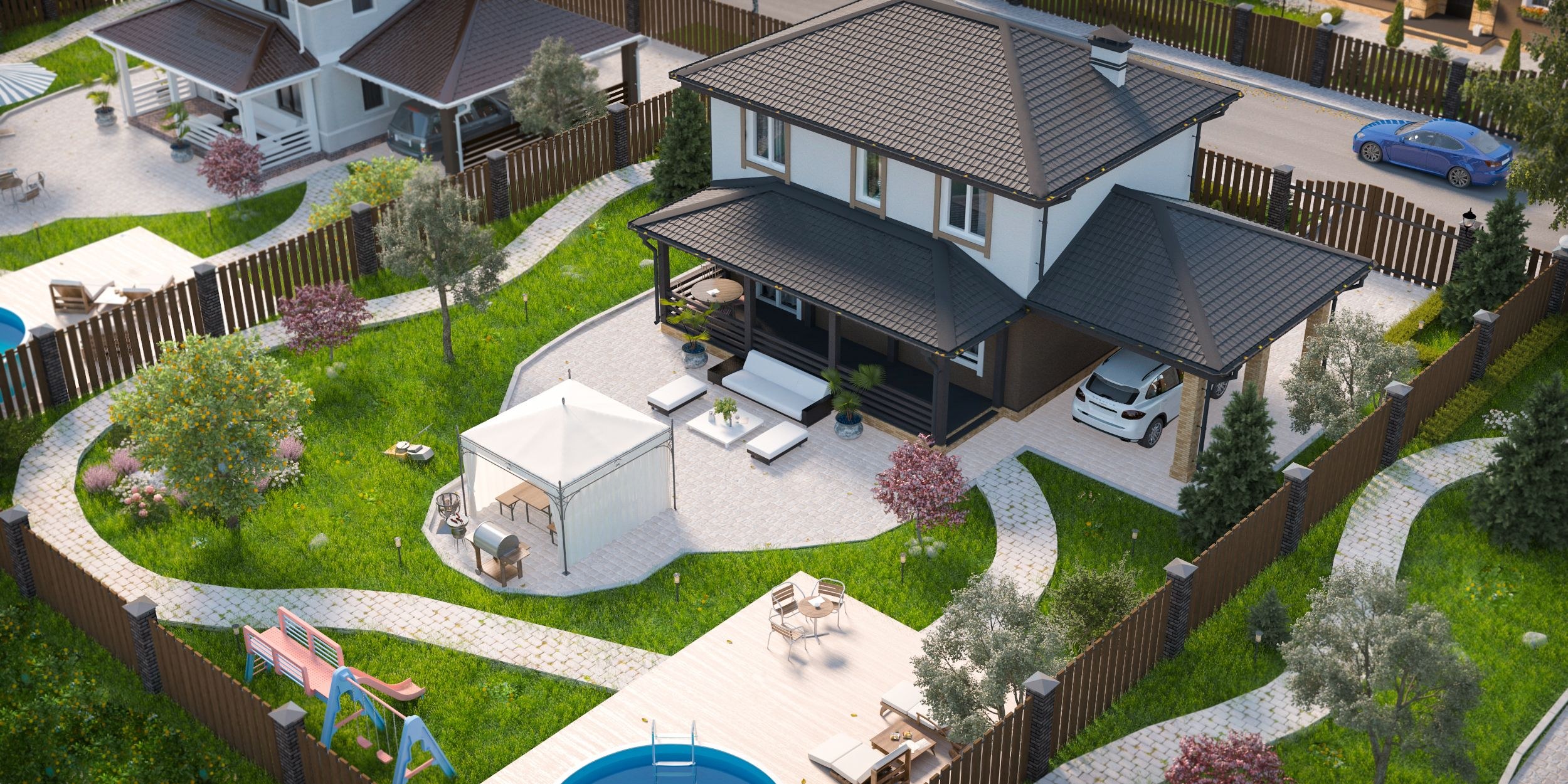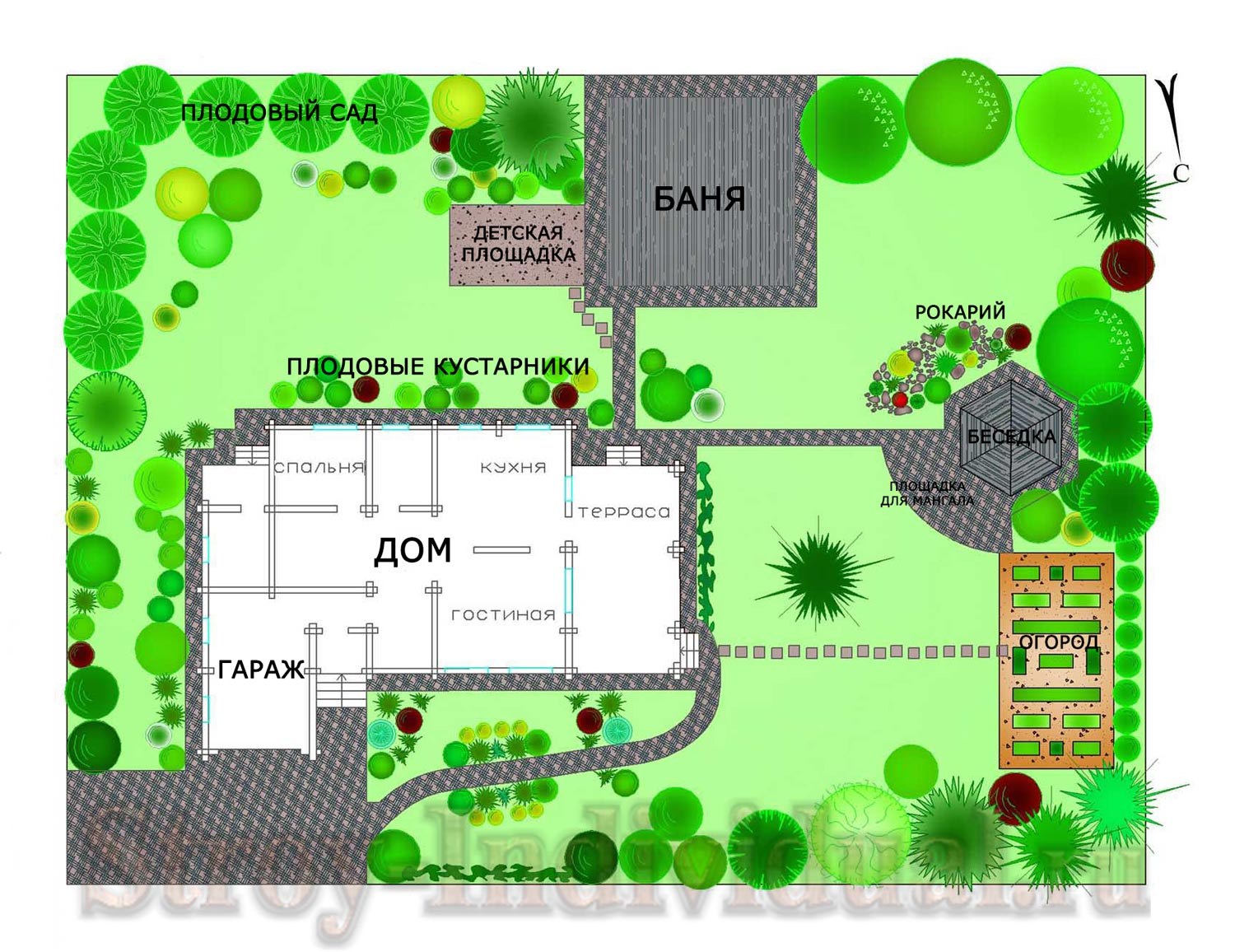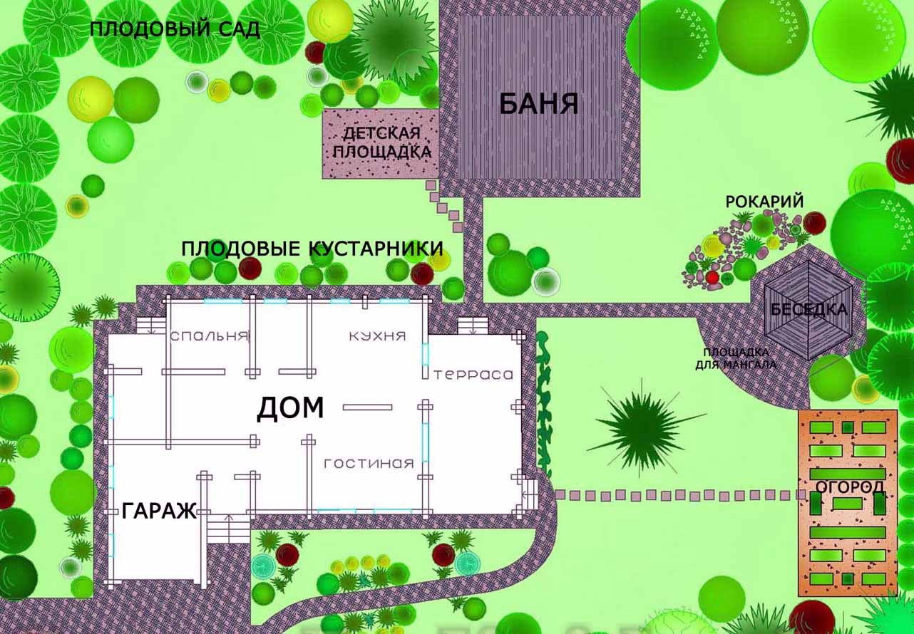 Планировка участка 20 соток с домом и баней и хозпостройками