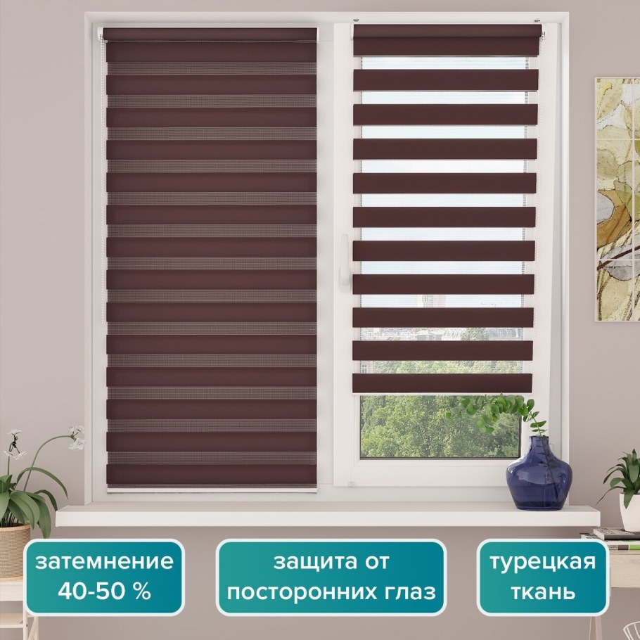 Рулонная штора Blackout с эффектом «день-ночь» DDA (мокко), 130х170 см