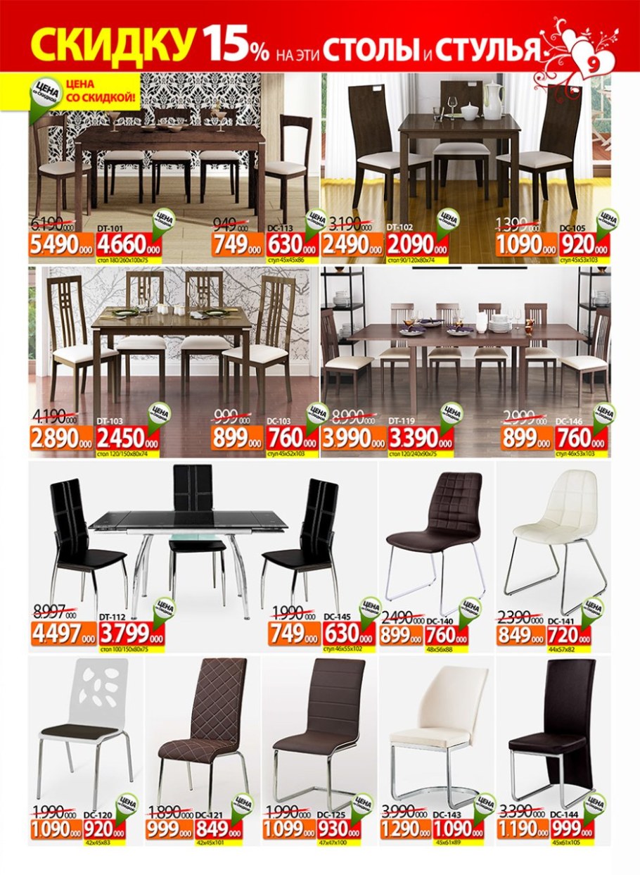 Скидки на столы и стулья