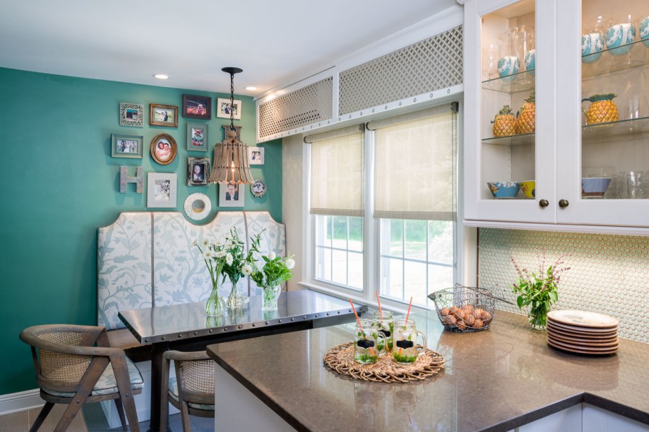Светильники над кухонным столом в интерьере