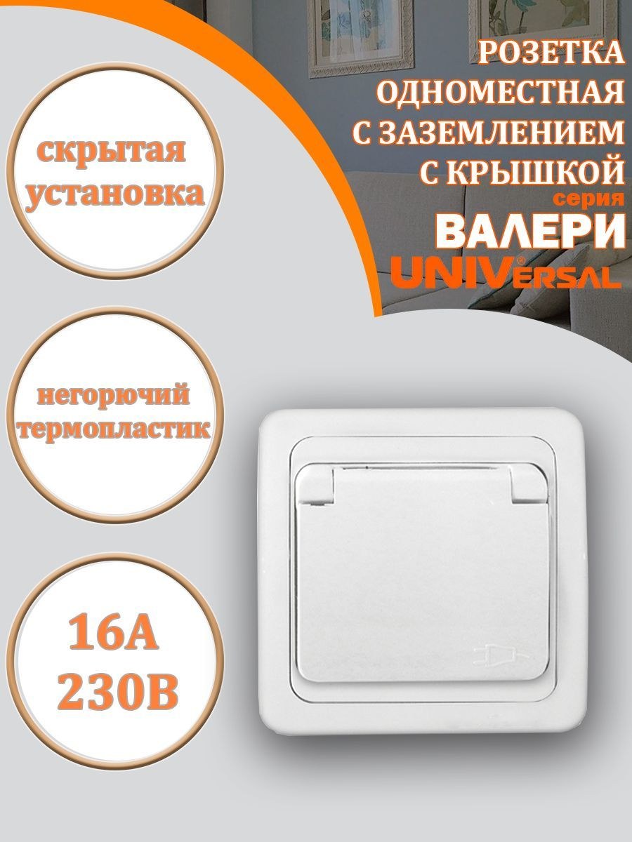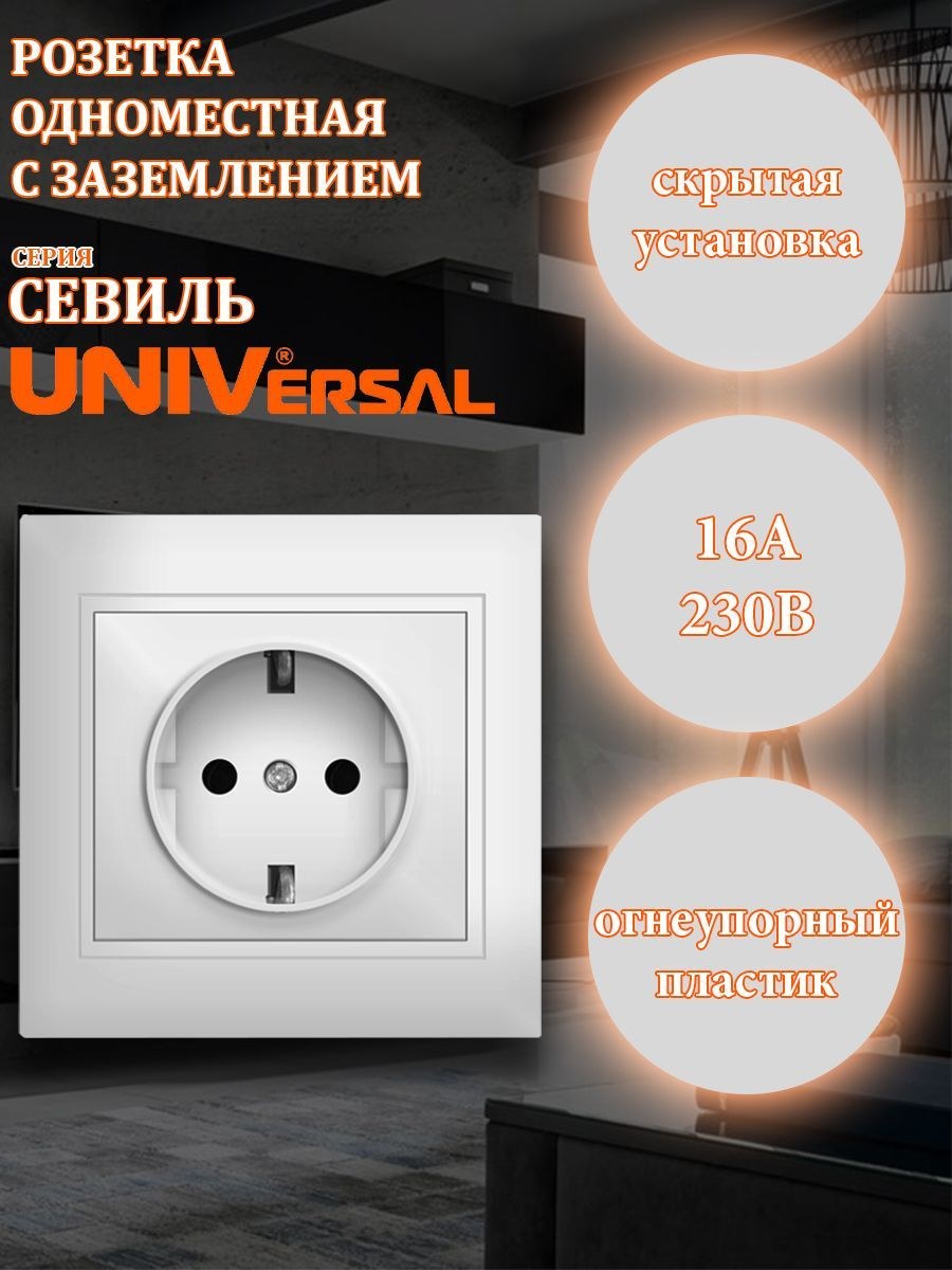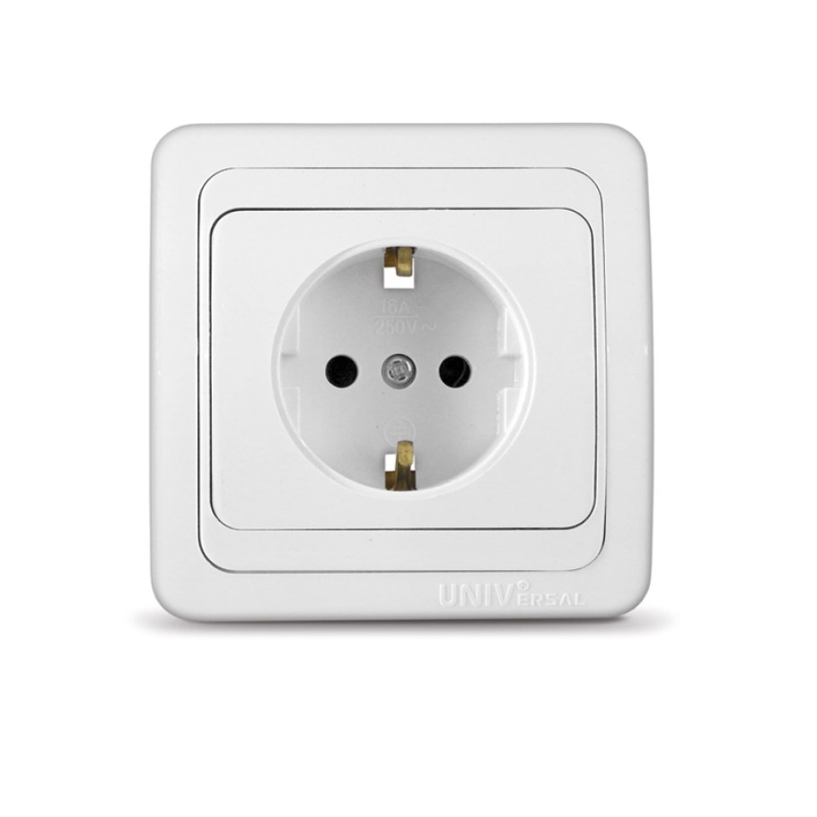Розетка 1-м ОП Олимп 16а ip20 с заземл. Бел. Universal о0028