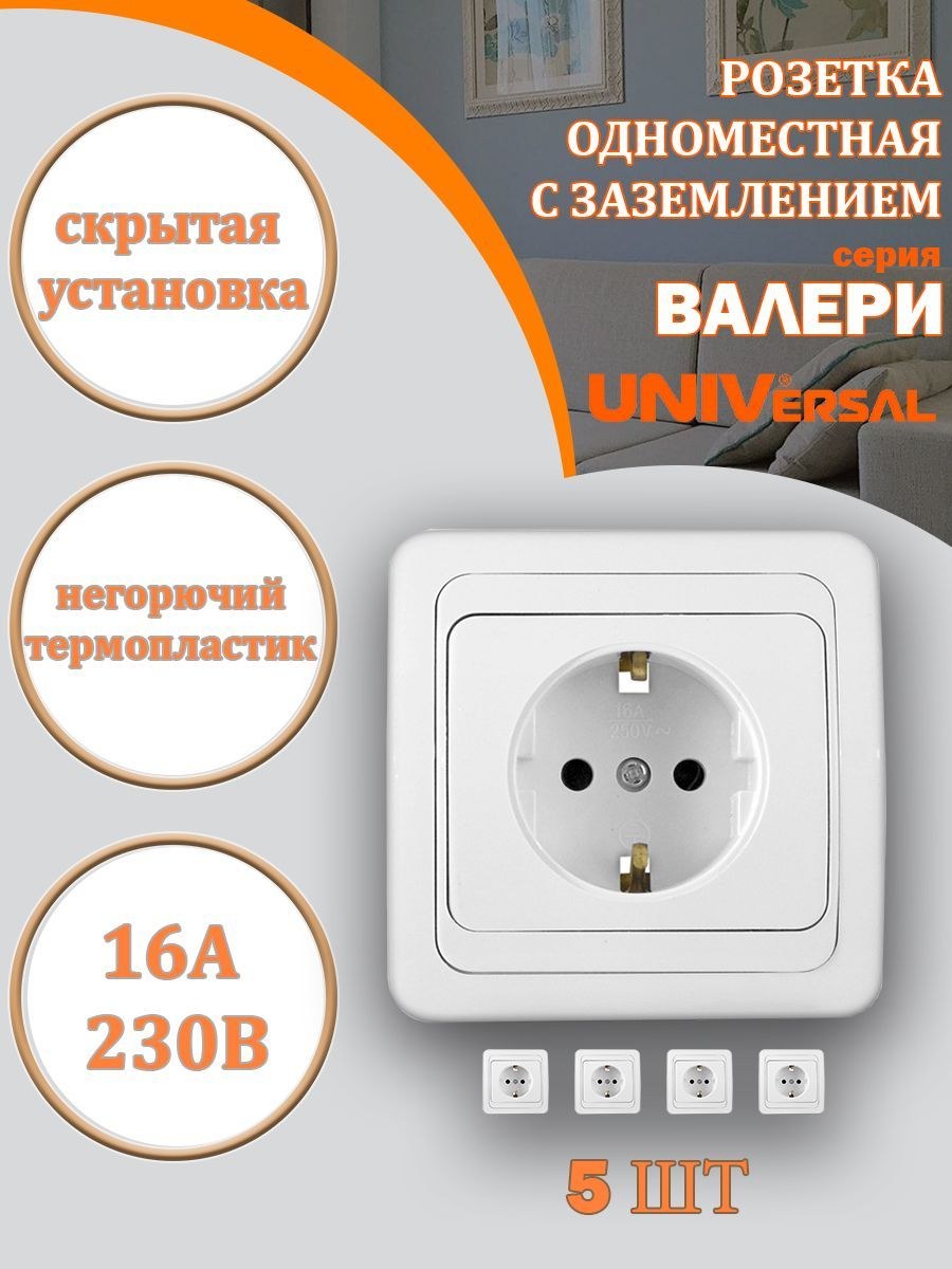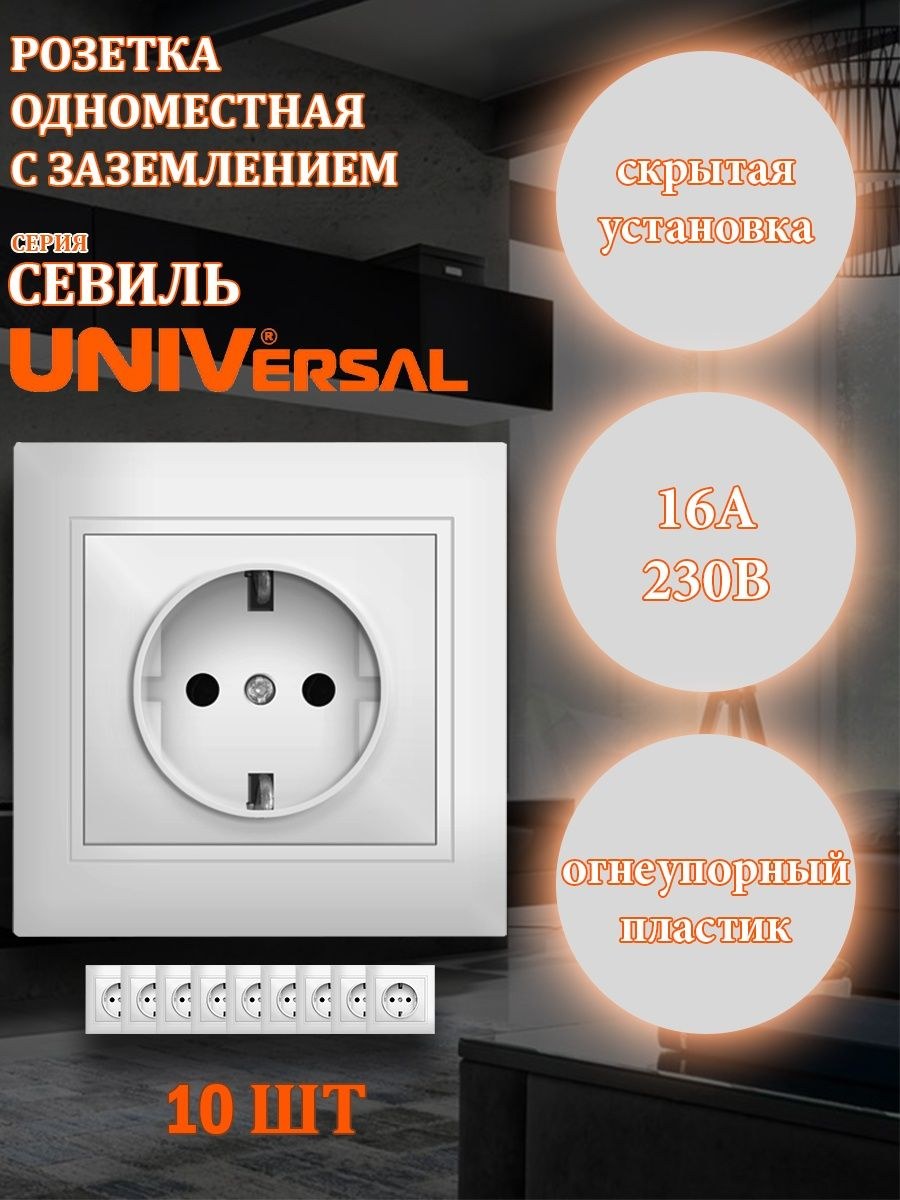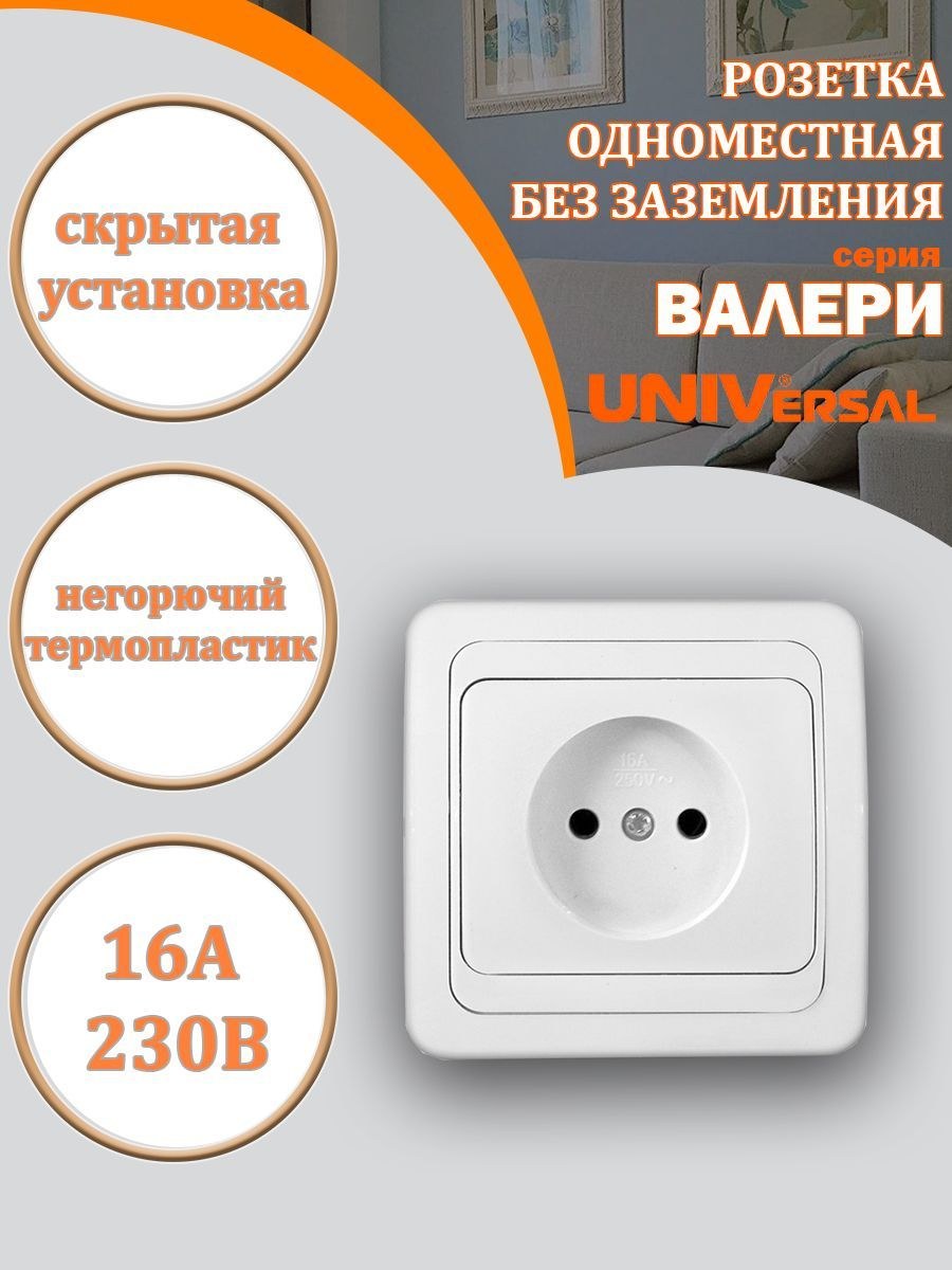 Розетка 1-м ОП Олимп 16а ip20 с заземл. Бел. Universal о0028
