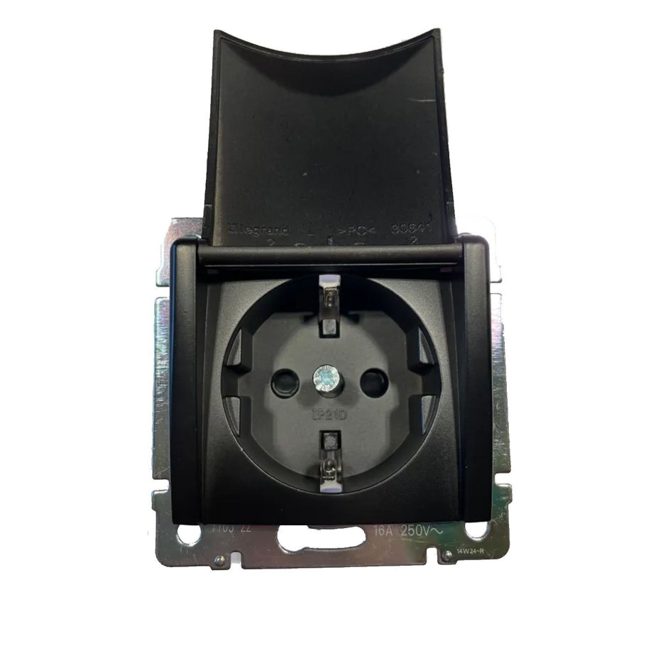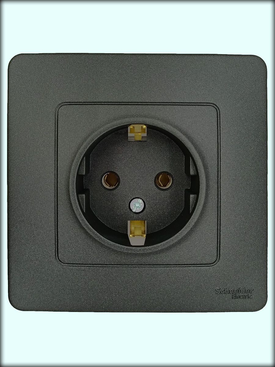 Розетка "элект" одноместная ra 16-131-ЧС, 16 А, 250 В, без з/к, черная/серебро